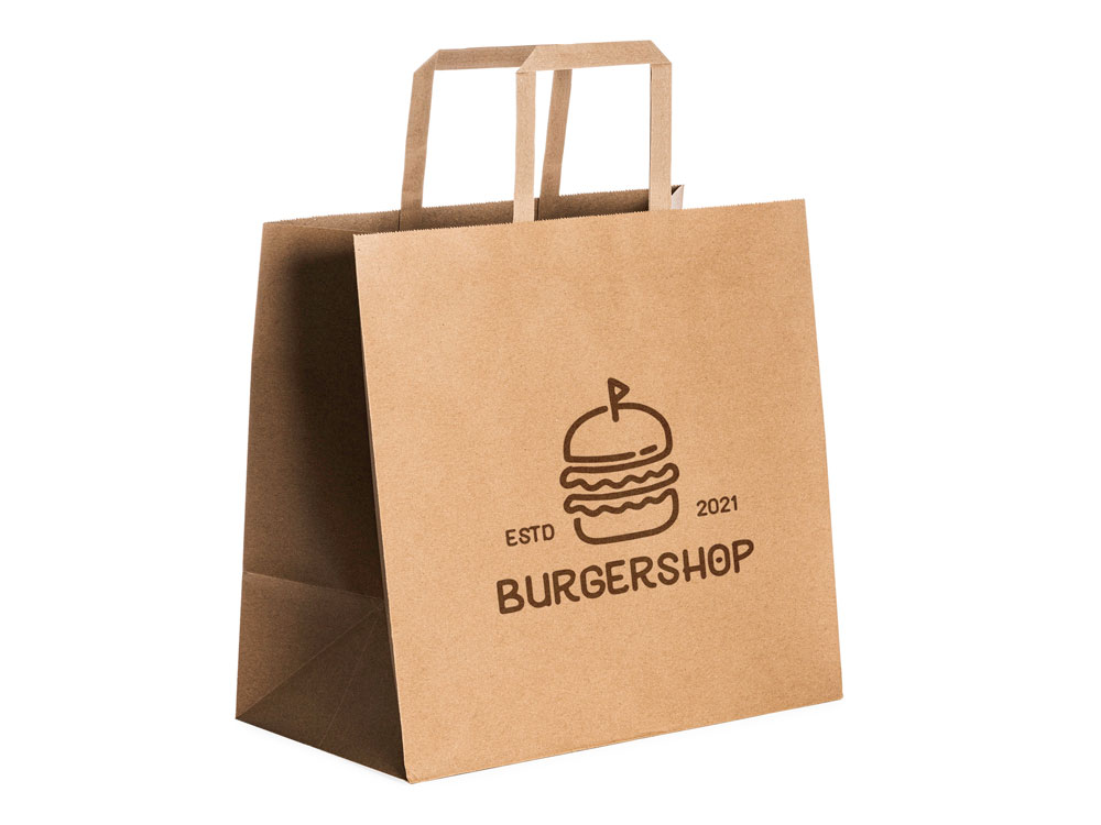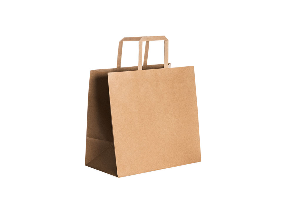 Бумажный пакет 80 гр натурального цвета. Усиленные короткие ручки плоской формы.