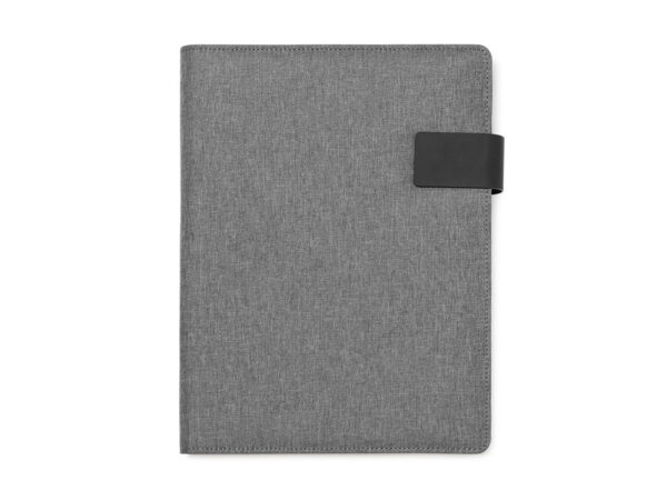 Многофункциональная папка формата А4 из 600D RPET с магнитной застежкой. В комплект входит съемный блокнот на 30 листов. 4 внутренних кармана и держатель для ручек.