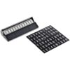 В наборе подставка с клейким основанием и комплект магнитных символов — при изменении номера телефона данные на визитке легко скорректировать.
