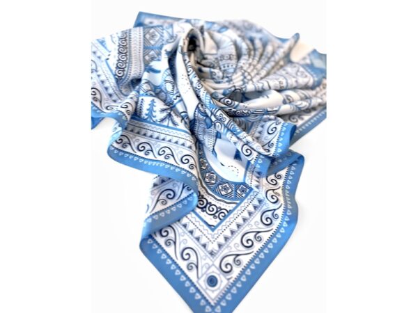 Сегодня мезенская роспись — это современный мотив модного аксессуара от Нины Ручкиной. Изящное шёлковое полотно платка, как воды реки-кормилицы, окутает ваш образ нежностью и элегантностью, многократно усилит его красоту и очарование. Пусть наша новинка станет вашим оберегом, символом удачи и преумножения благ!
