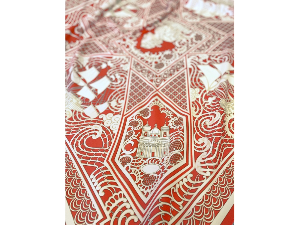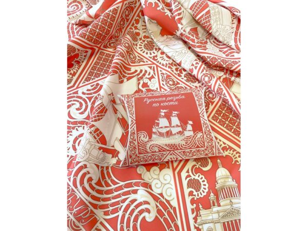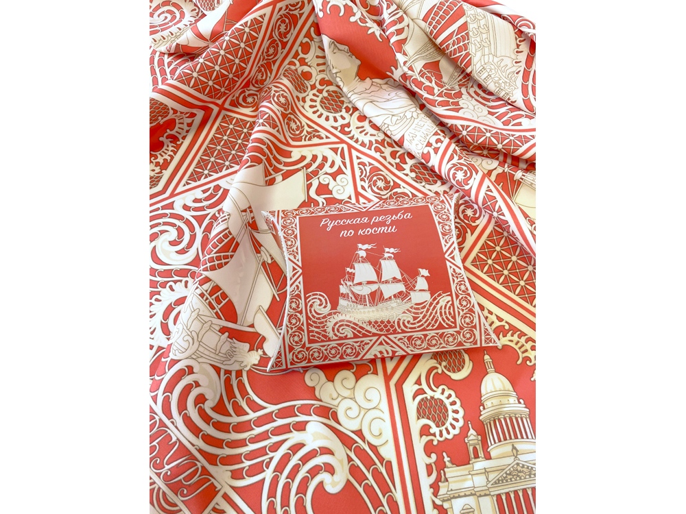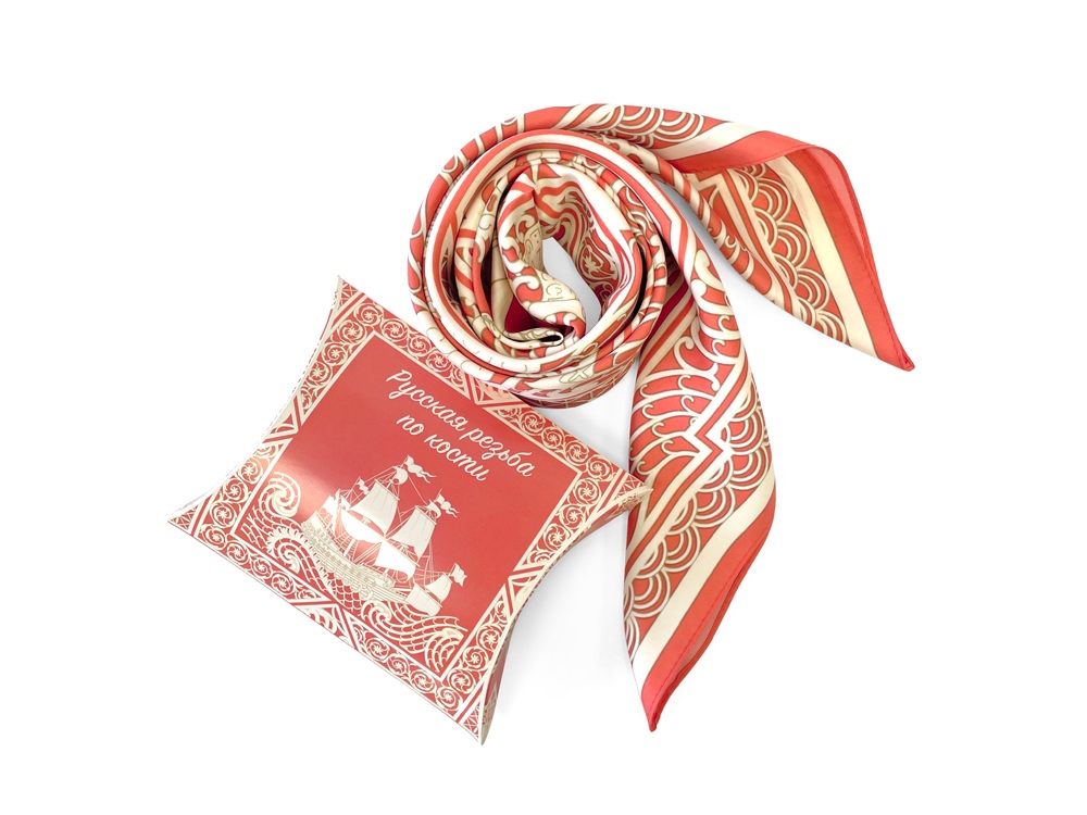 Платок «Русская резьба по кости» совмещает в себе традиции виртуозных мастеров и отвечает запросам нашего времени. В изысканный и модный аксессуар вплетена история, а сам по себе он является модным акцентом в образе современной девушки.