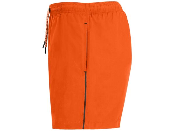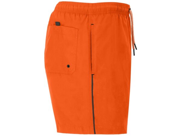 Плавательные шорты с двумя боковыми карманами. Эластичный пояс с регулируемым шнурком и контрастными металлическими люверсами. Задний карман с люверсом.