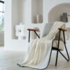 Легкие и теплые пледы выполнены из тонкой полушерстяной пряжи, поэтому прекрасно согревают и неприхотливы в уходе.