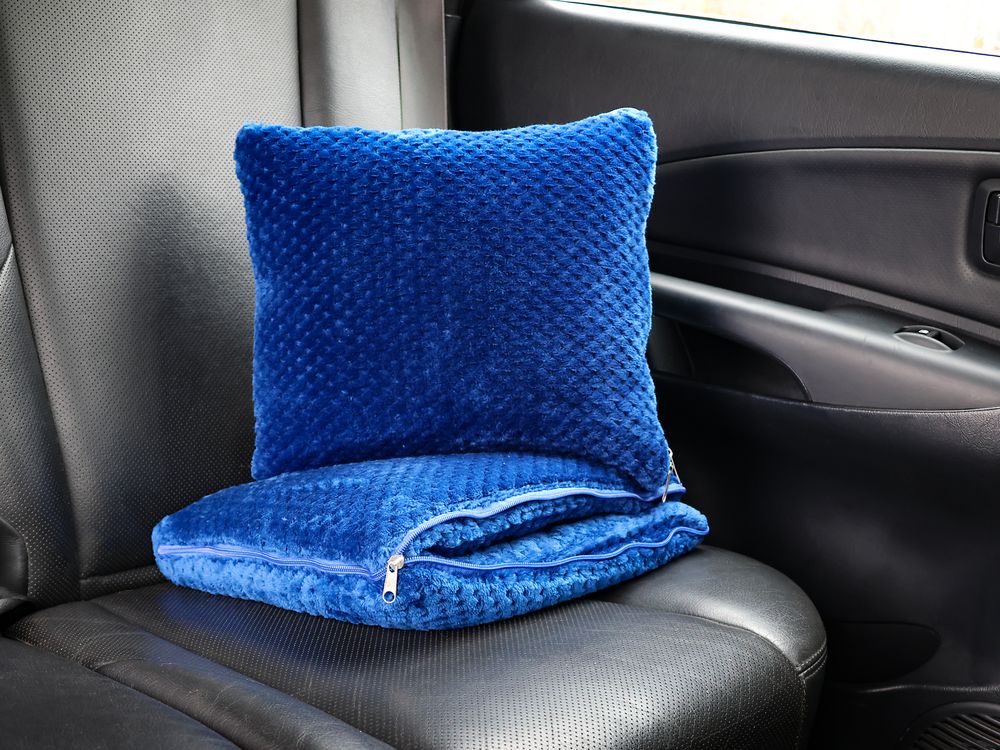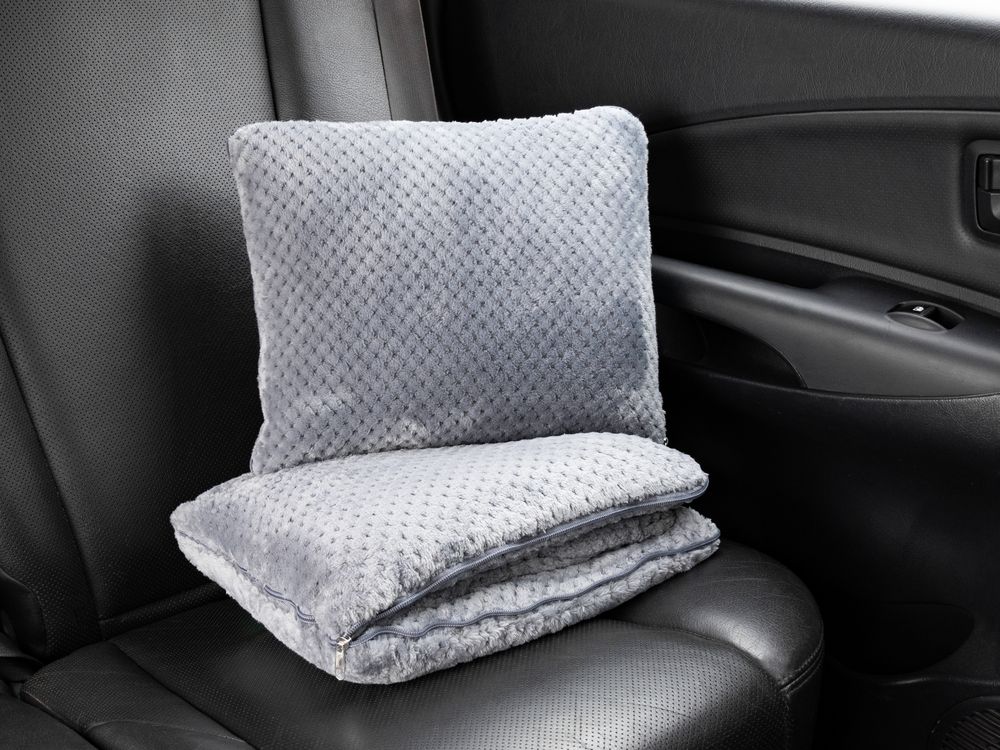 Мягкий плед из длинноворсового флиса легко трансформируется в подушку для удобного хранения — и сладкой послеобеденной дремы.