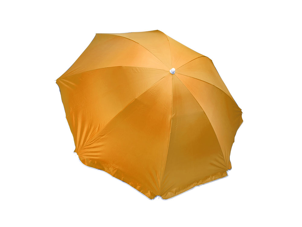 Пляжный зонт с 8 панелями из прочного нейлона с защитой от ультрафиолета. Доступен в широком ассортименте цветов. Стержень с регулируемой высотой и белыми спицами. Купол окантован двойной строчкой. В комплекте чехол для переноски с плечевым ремнем.