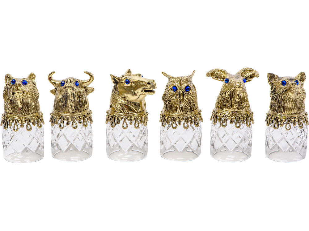 стопки- прозрачный/золотистый, шкатулка- темно-коричневый/рыжий