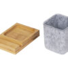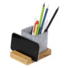 Подставка на рабочий стол для ручек и карандашей из RPET-фетра на подставке из бамбука. У бамбуковой подставки выемка 10 мм, в которую можно поставить телефон.