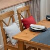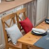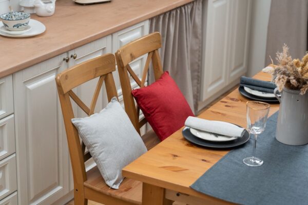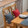 Износостойкая ткань, имитирующая лен, обработана пропиткой от грязи и воды, что делает ее применение для кухни и дома практичным, а уход — легким.