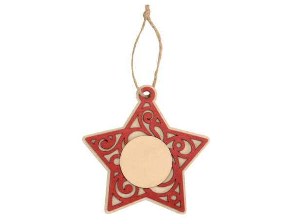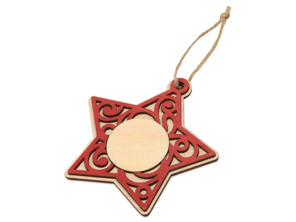 Оригинальная елочная подвеска в виде звездочки станет прекрасным сувениром к новогодним праздникам, который будет напоминать о вас каждый декабрь во время украшения елки. Ажурная подвеска выполнена из березовой фанеры и тонирована в красный цвет, а также имеет поле для нанесения по центру, которое осталось лишь дополнить логотипом, надписью или изображением.