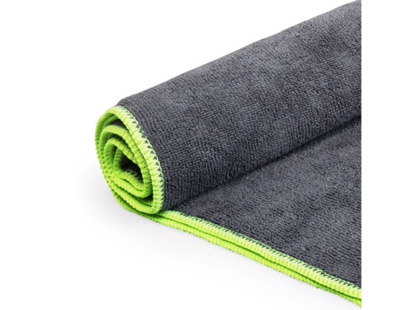 Пляжное полотенце двухцветного дизайна с практичным эластичным ремнем для удобного складывания.