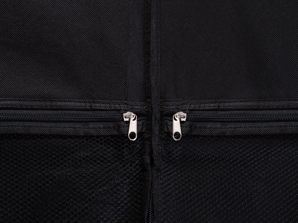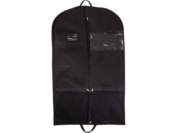 Дорожный чехол из нетканого материала для одежды, который помогает перевозить одежду чистой и без складок. В сложенном виде напоминает форматом портфель, легко переносится с места на место благодаря удобным ручкам. Чехол имеет отверстие для крючка вешалки, на которую вы можете повесить одежду перед тем, как поместить ее внутрь.