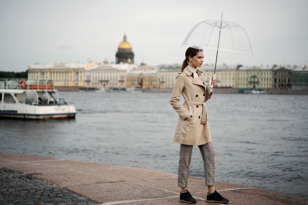 Мыть зонт следует прохладной водой, сушить вдали от источников тепла. Если водой удалить тальк не удается, попробуйте протереть его спиртом.