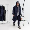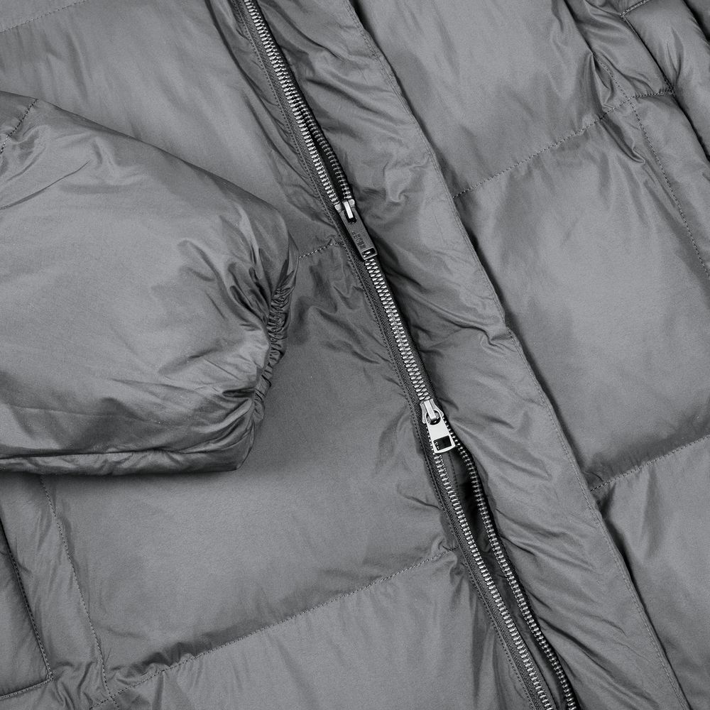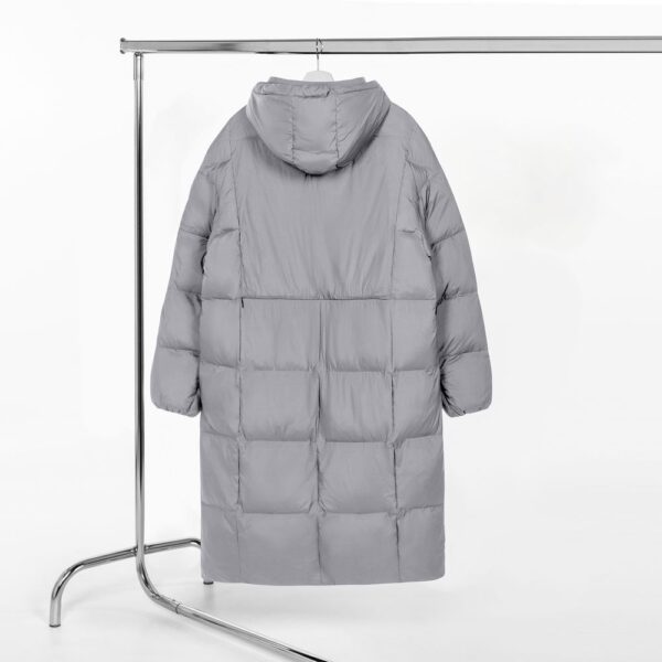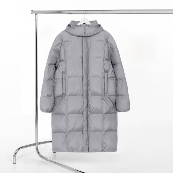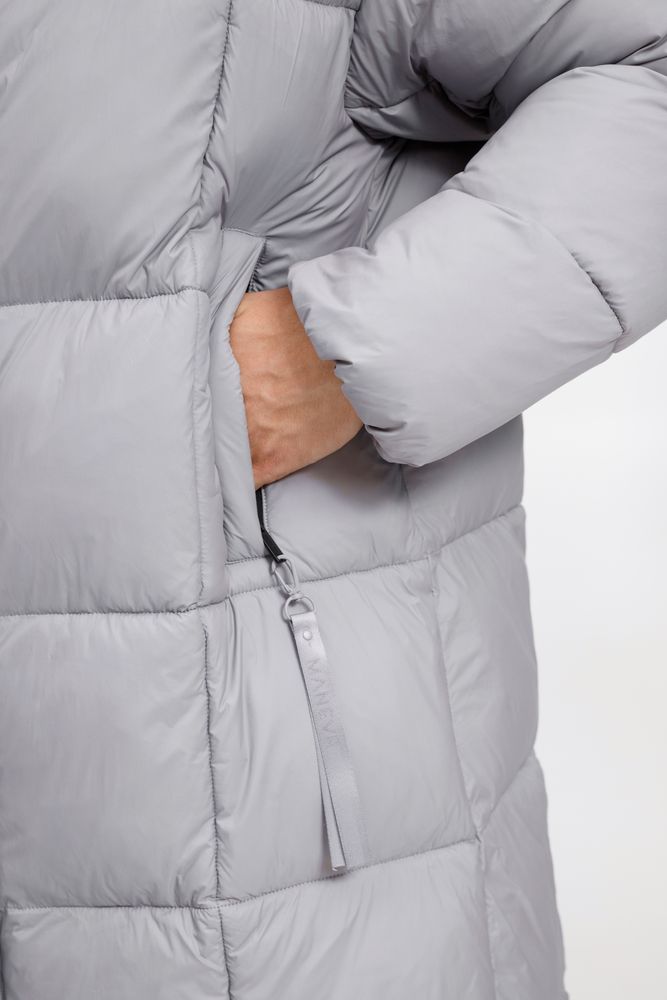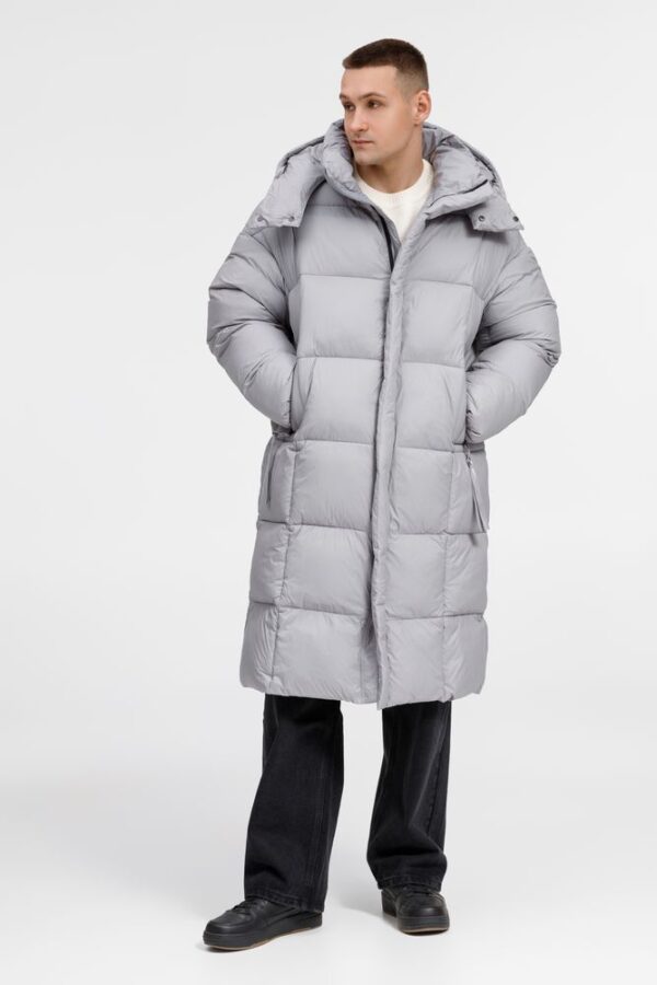 Удлиненный пуховик унисекс с капюшоном.