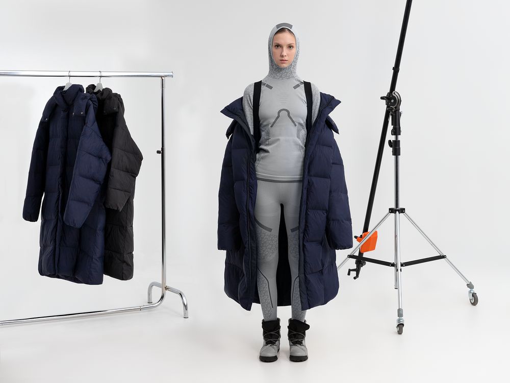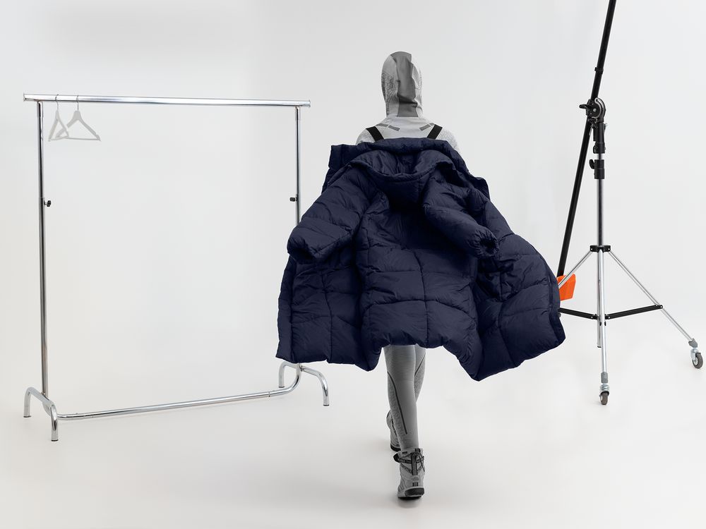 При перепаде температур, например, попадании в теплое помещение с улицы, можно просто накинуть пуховик за спину, как рюкзак, — на лямки с внутренней стороны спинки.
