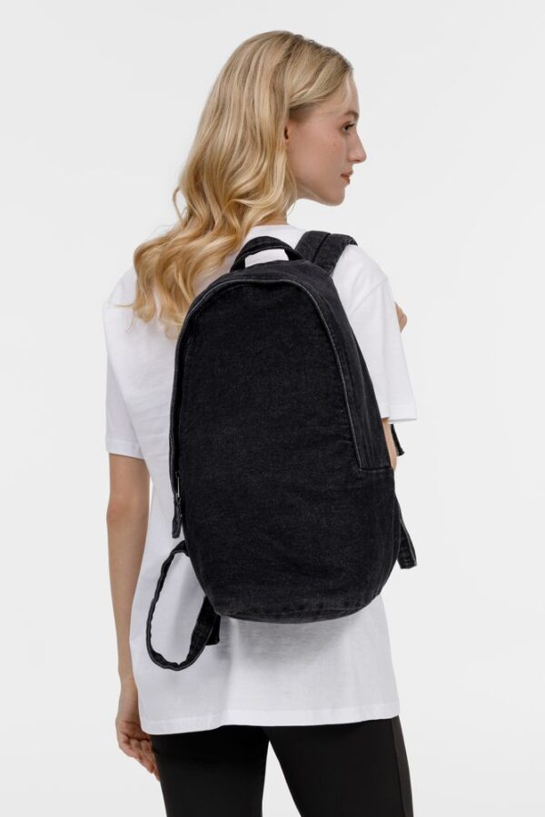 Лаконичный рюкзак из джинсовой ткани разработан в рамках единой коллекции и легко собирается в комплекты. Специально спроектированные лекала и технологии пошива открывают простор для любых вариантов кастомизации и нанесения изображений. На видимой части изделий нет лейблов с айдентикой бренда, а название бренда с уходника легко удалить.