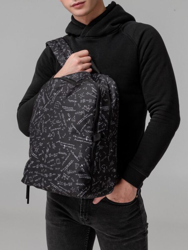 Рюкзак с девизом: «Единственное, что могу считать в математике, — считаю, что это не мое». Судя по размеру, вмещает энное количество вещей. Подтверждение этому можно находить снова и снова.