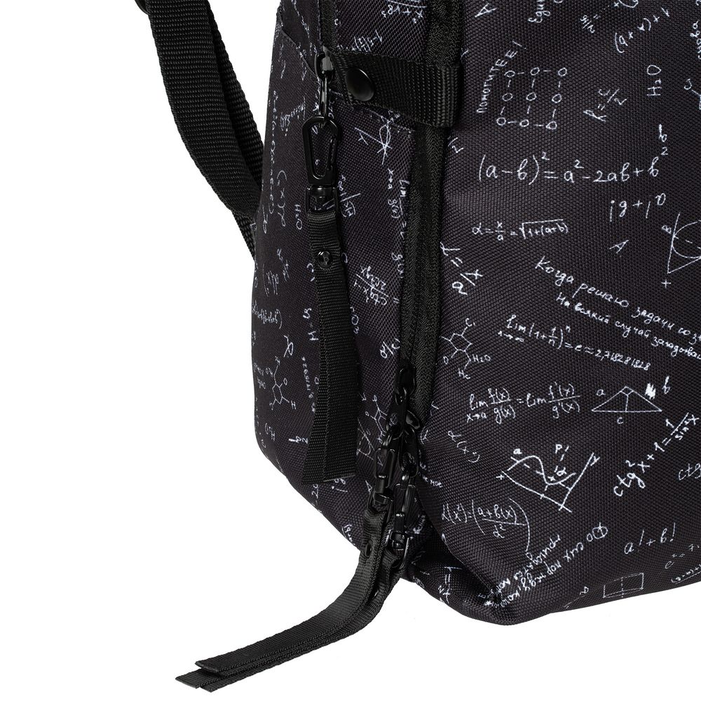 Рюкзак с девизом: «Единственное, что могу считать в математике, — считаю, что это не мое». Судя по размеру, вмещает энное количество вещей. Подтверждение этому можно находить снова и снова.