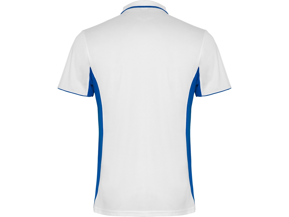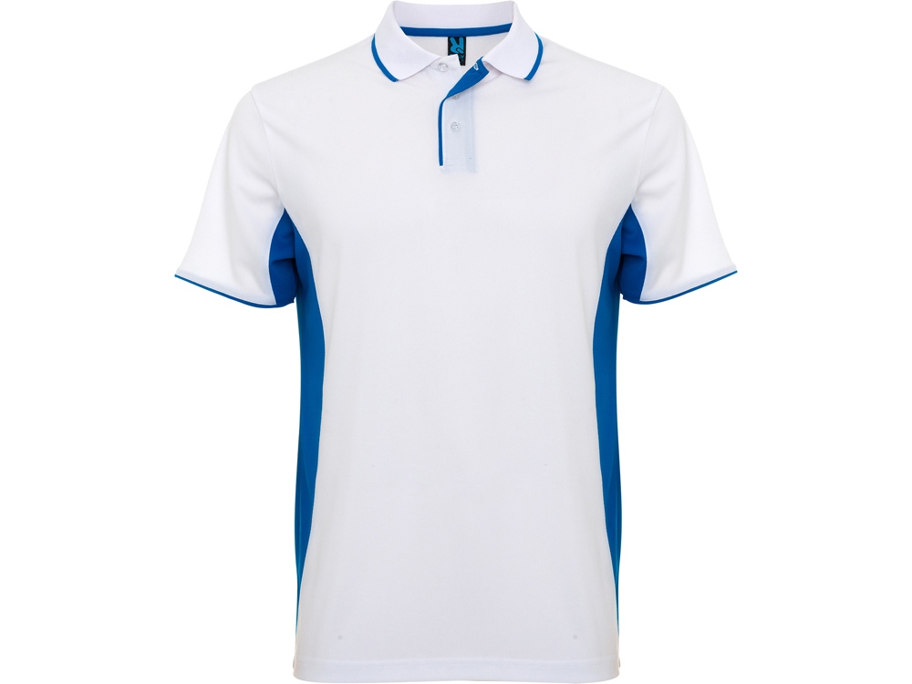 Спортивная рубашка поло из технологичного полотна для занятий спортом. Колорблокинговое сочетание из двух цветов. По воротнику и рукавам отделка контрастной полосочкой. Планка на 3 пуговицы. Дышащее полотно легко стирается и быстро сохнет