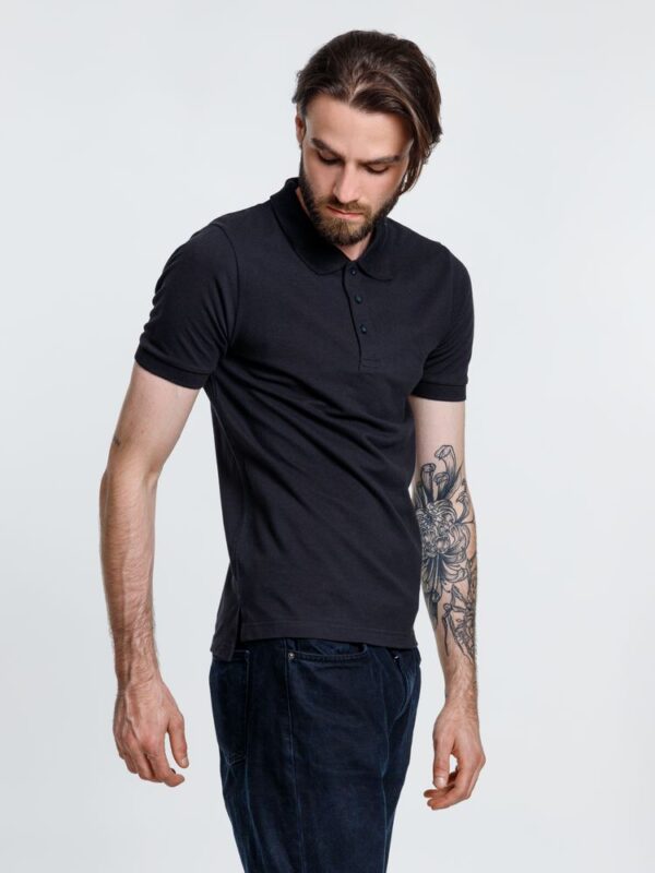 Мужская рубашка поло прямого силуэта с разрезами по бокам.