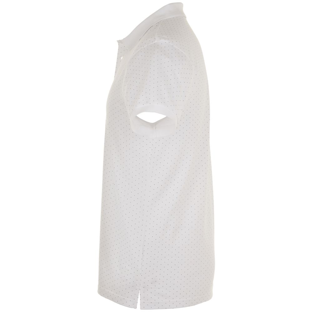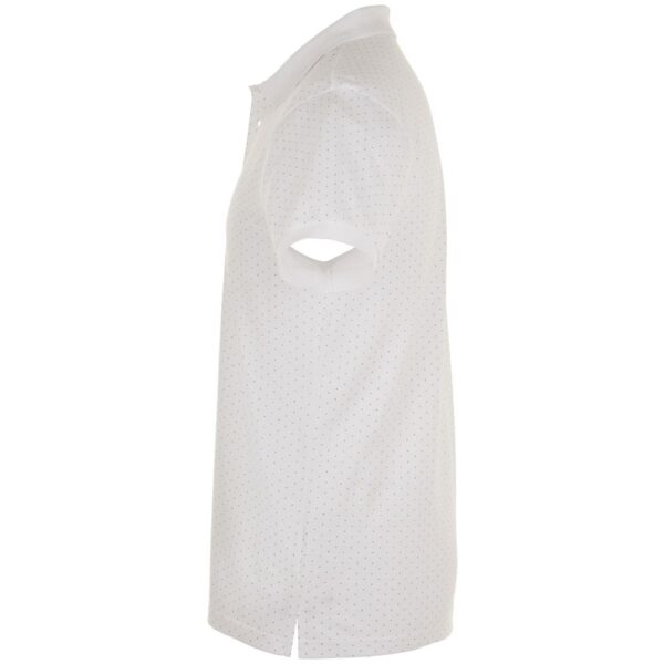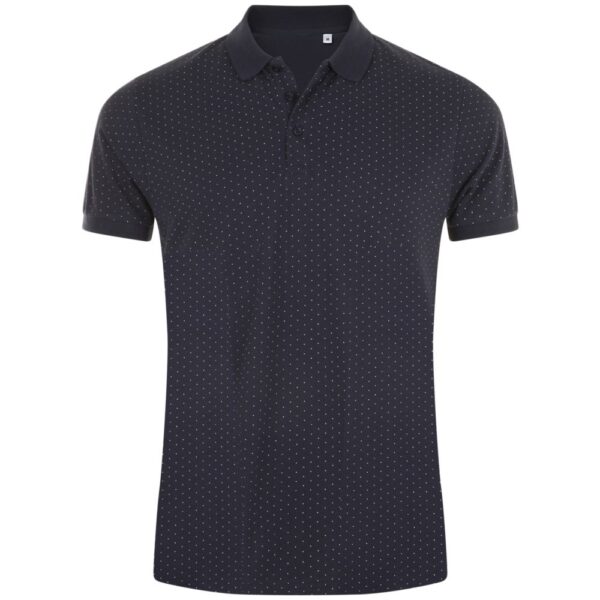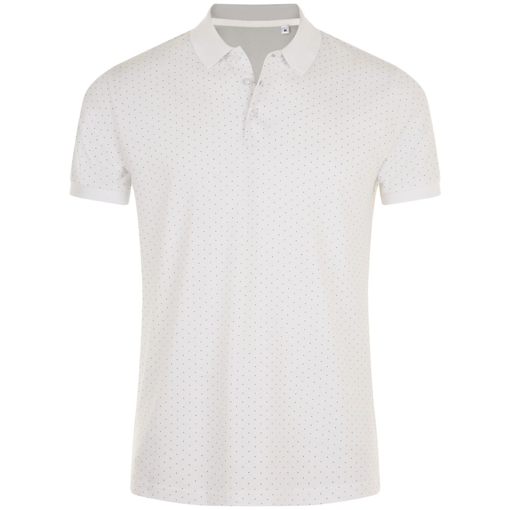 Рубашка поло приталенного силуэта с рисунком в точку. Лейбл производителя в боковом шве изнутри, в шве горловины — только бирка с размером, что позволяет вам нанести свой логотип.