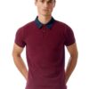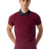 Рубашка поло с джинсовым воротником и контрастной отстрочкой.
