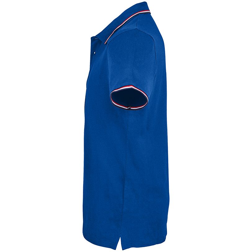 Мужская рубашка поло с боковыми швами. Лейбл производителя в боковом шве изнутри, в шве горловины — только бирка с размером, что позволяет вам нанести свой логотип.