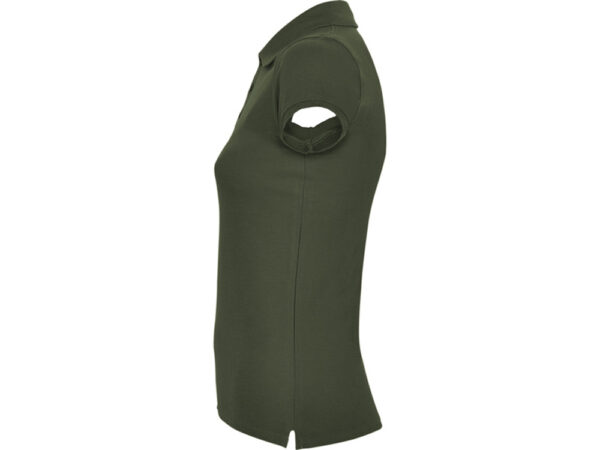 Поло с коротким рукавом для женщин приталенного силуэта. Воротник и манжеты из риба 1х1, отделка горловины внутри тесьмой. Элегантная планка застегивается на 3 пуговицы. Разрезы в боковых швах.