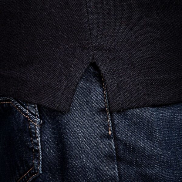 - Контрастные полоски на воротнике и на манжетах