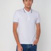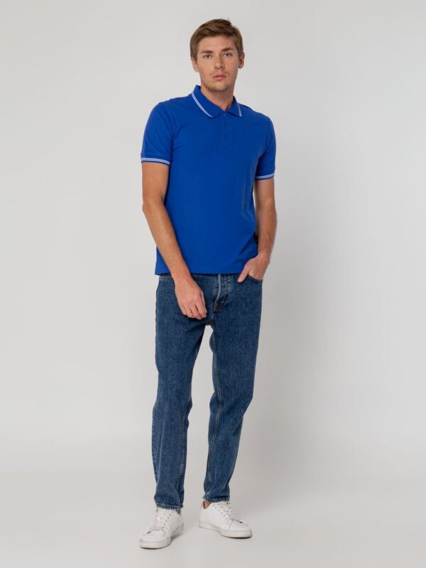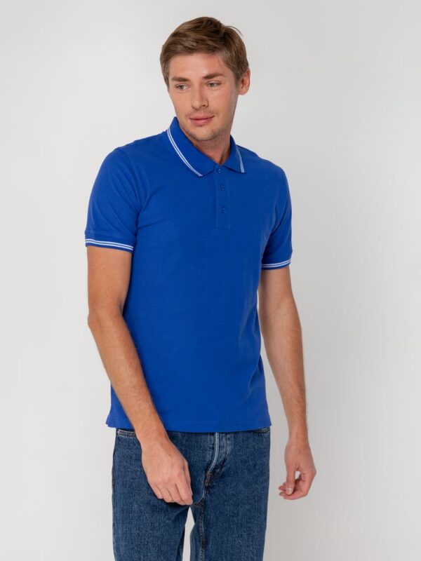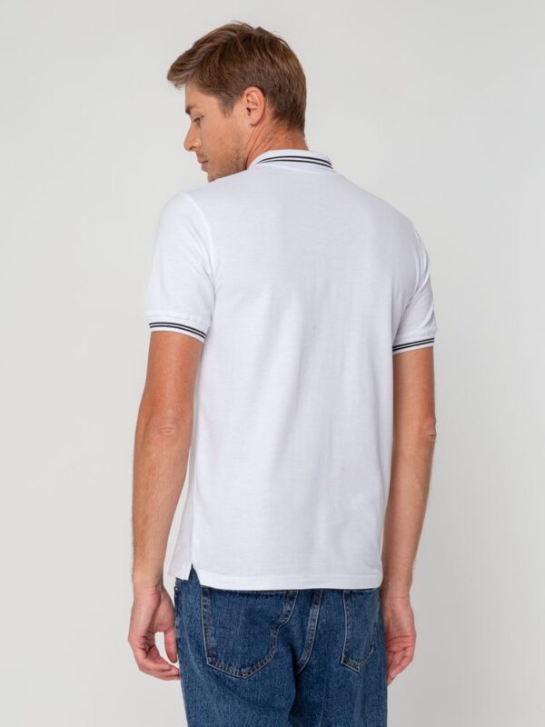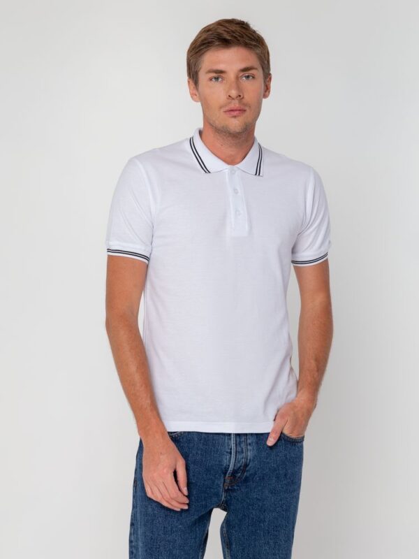 Мужская рубашка поло прямого силуэта с контрастными деталями.