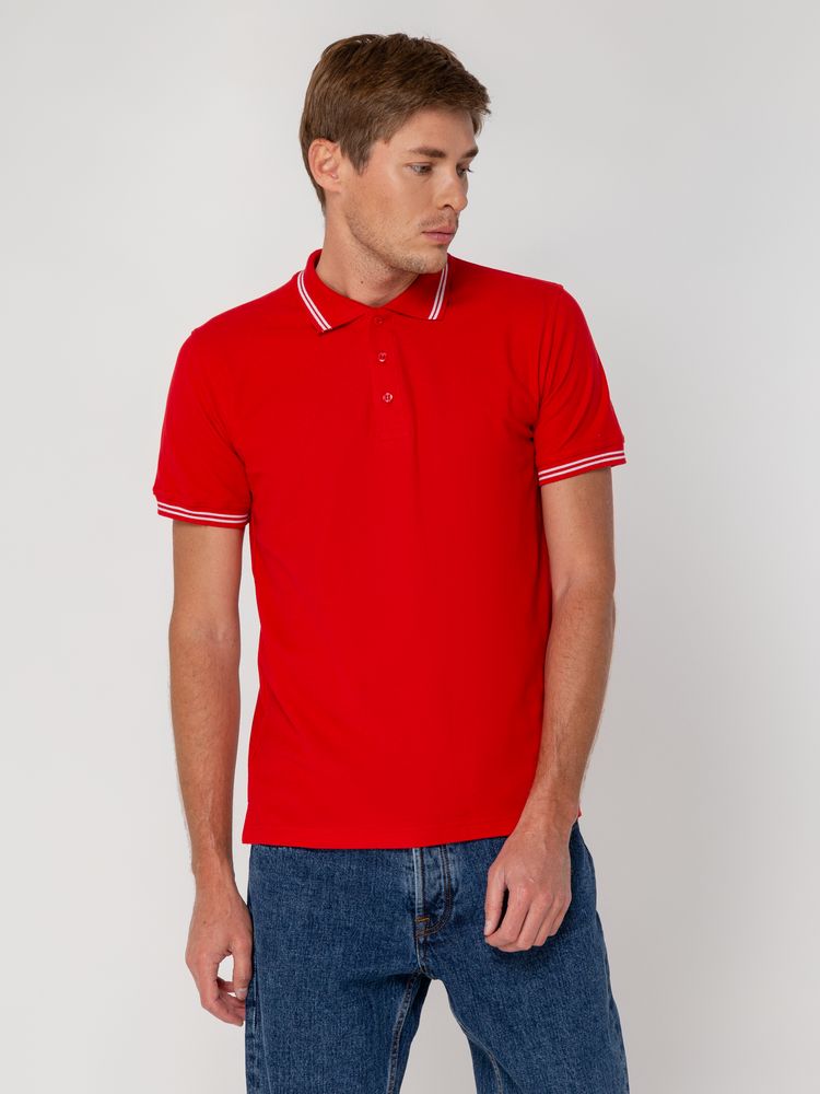 Мужская рубашка поло прямого силуэта с контрастными деталями.