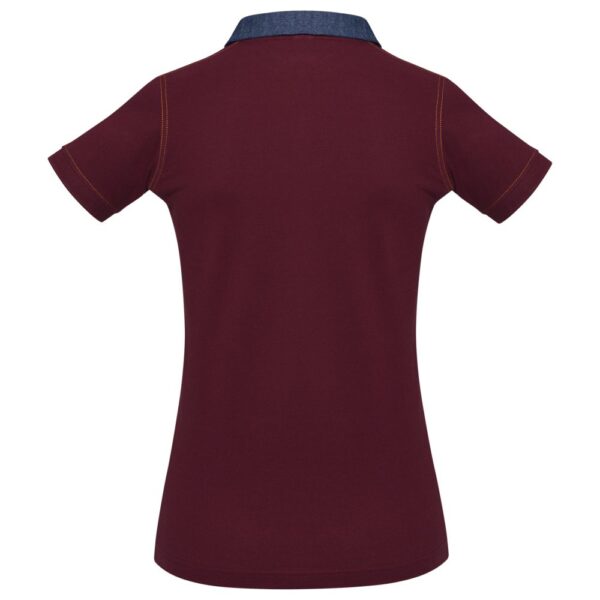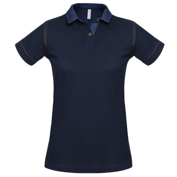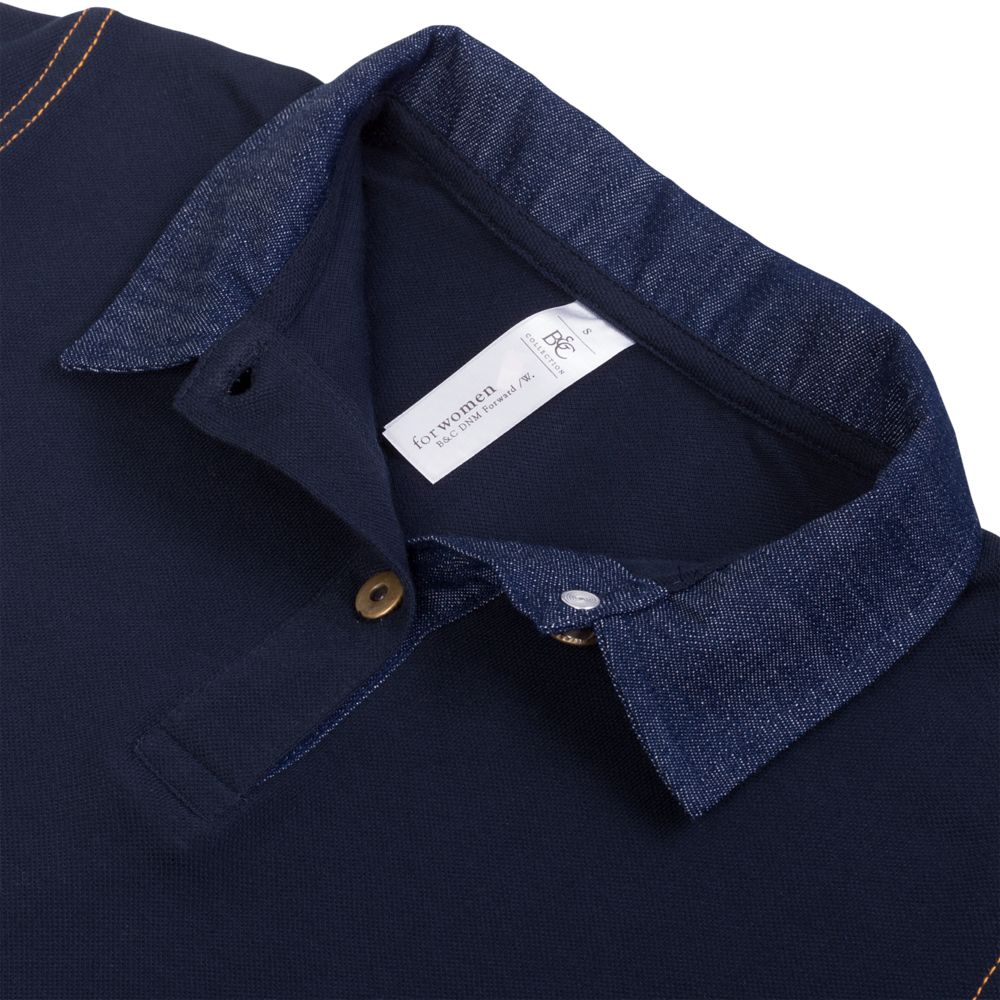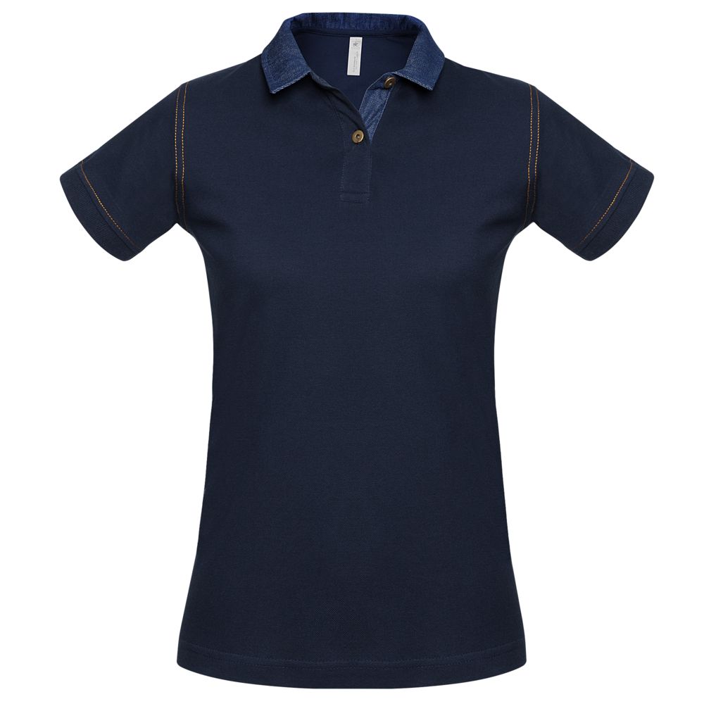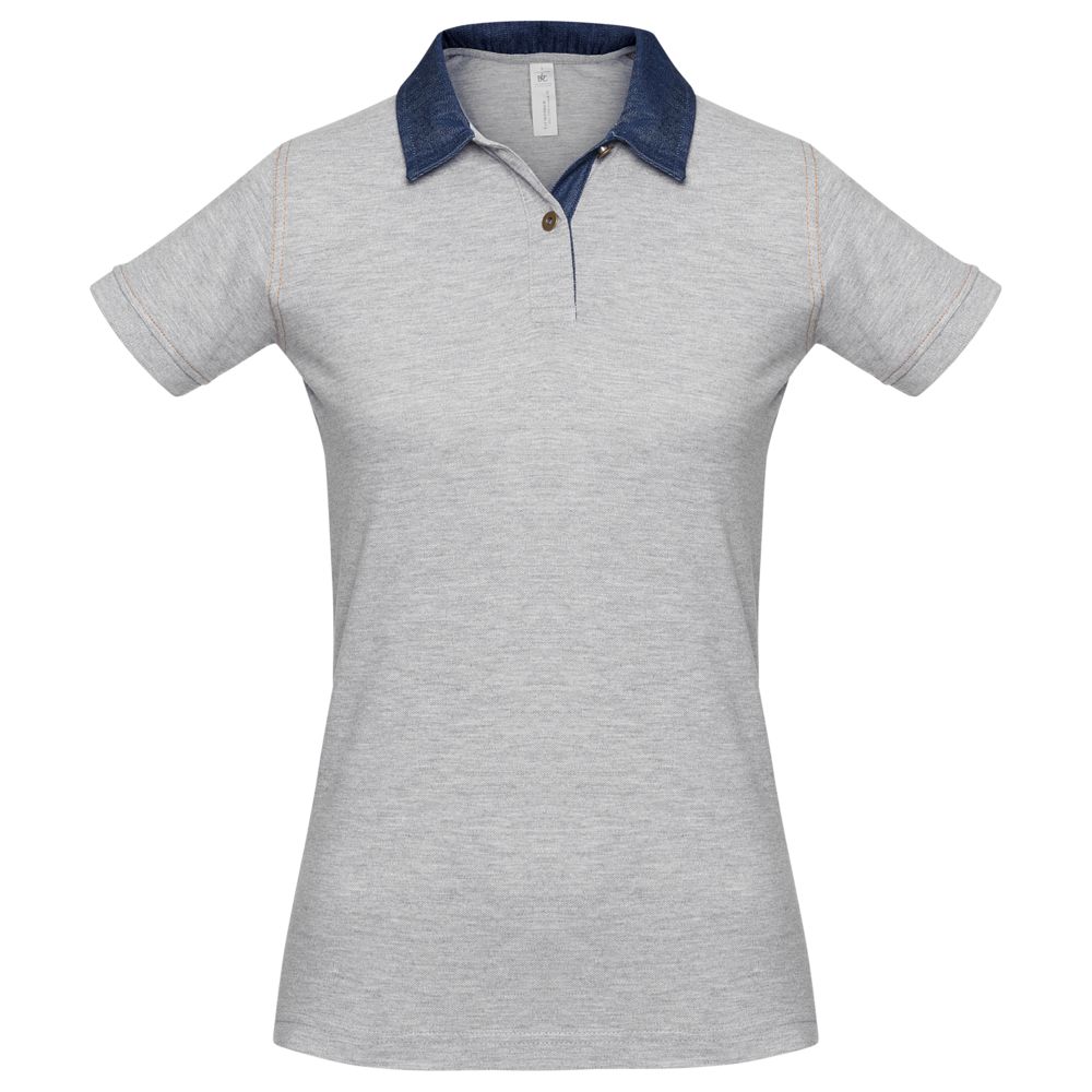 Рубашка поло с джинсовым воротником и контрастной отстрочкой.