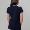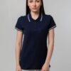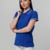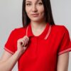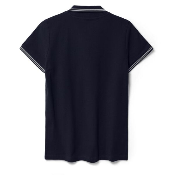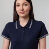Женская рубашка поло приталенного силуэта с контрастными деталями.