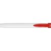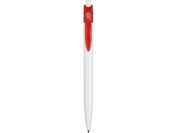 Стильная пластиковая ручка с ярким цветным клипом и белым корпусом отлично подойдет для нанесения логотипов и рекламной информации. Нажимной механизм.
