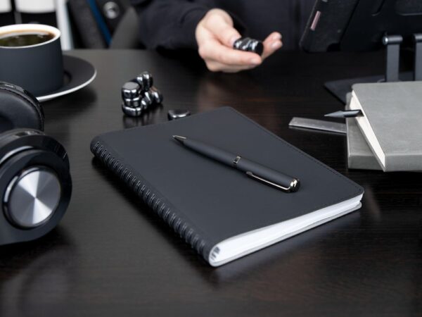 Шариковая ручка классического дизайна с матовым корпусом и металлическими деталями.