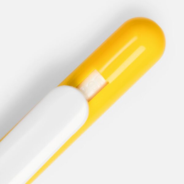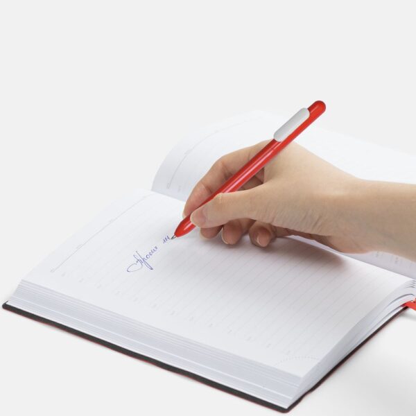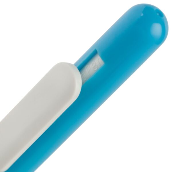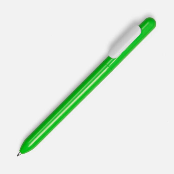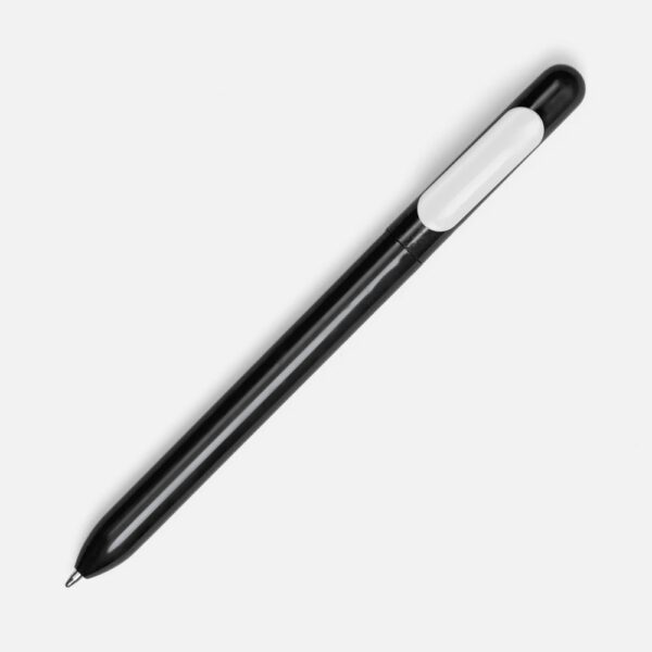 Ручка из глянцевого пластика с белым клипом.