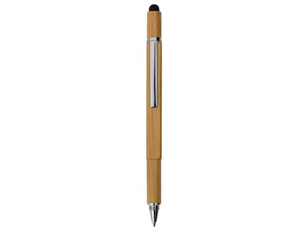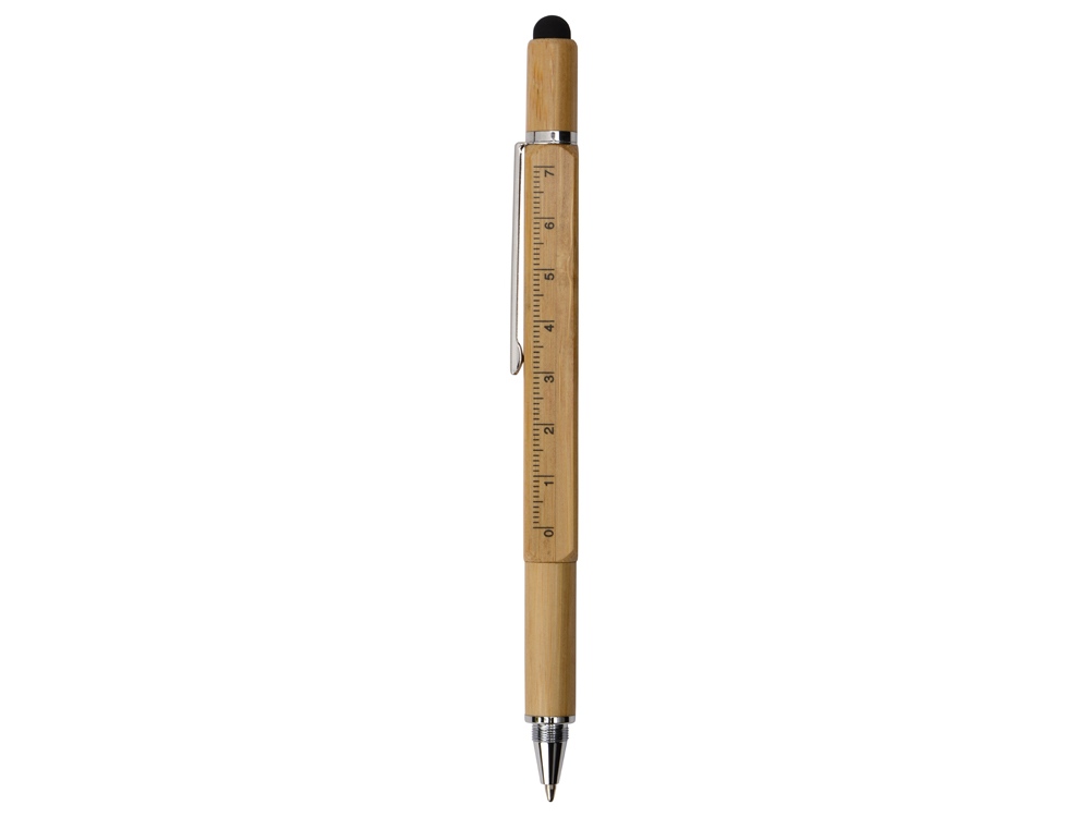Четырехгранная шариковая ручка с поворотным механизмом в бамбуковом корпусе сочетает несколько полезных функций: