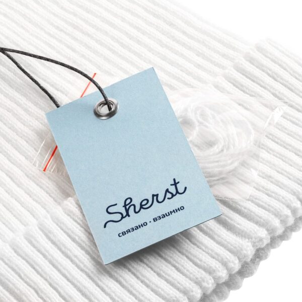 Металлический шильд с названием бренда расположен у заднего шва шапки. Это оставляет место спереди для пришива лейбла или шильда с логотипом заказчика.
