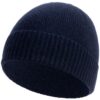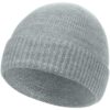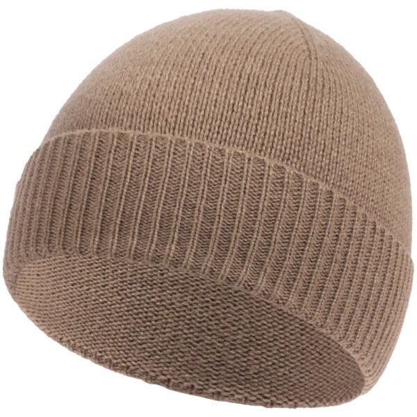 Однослойная шапка гладкой вязки с отворотом.