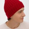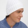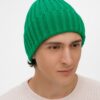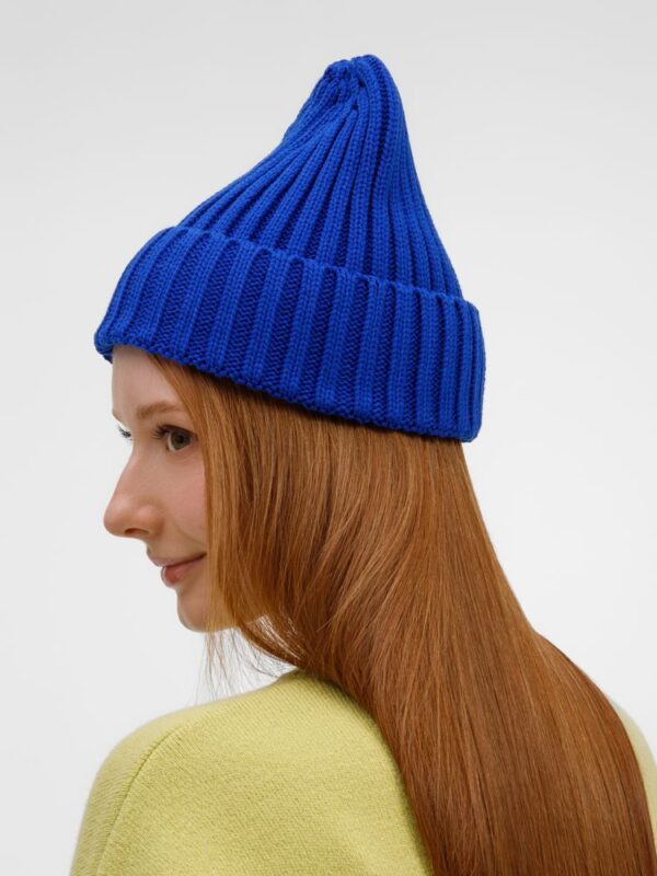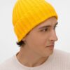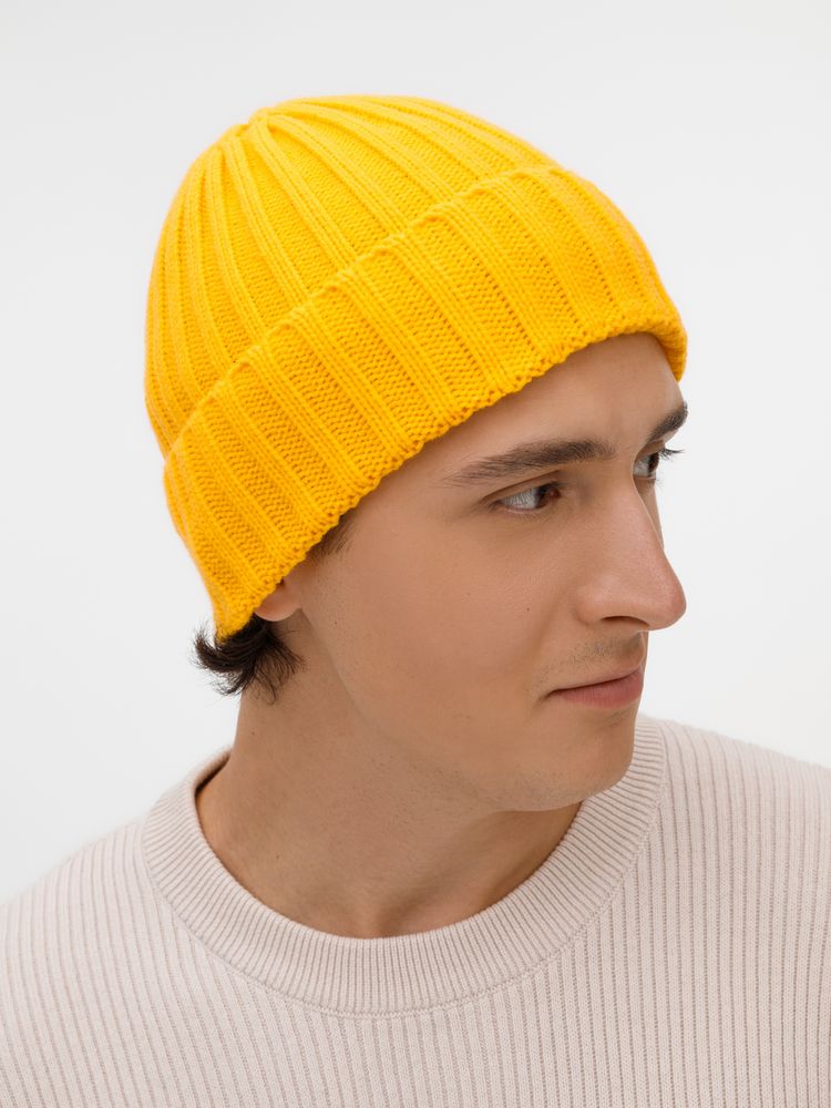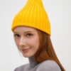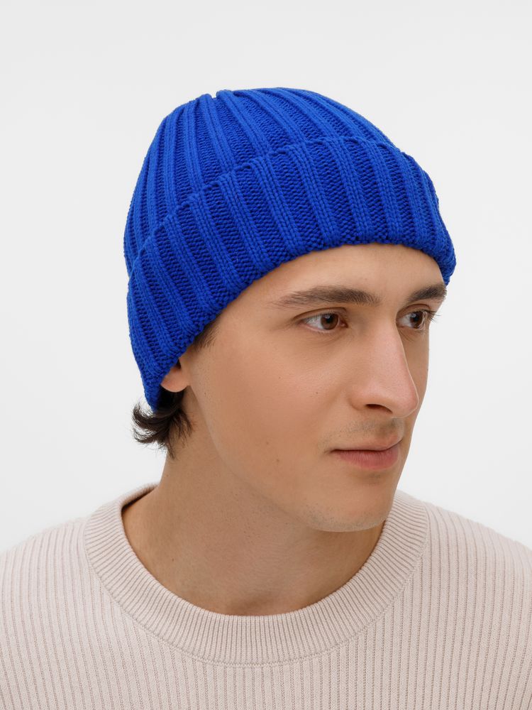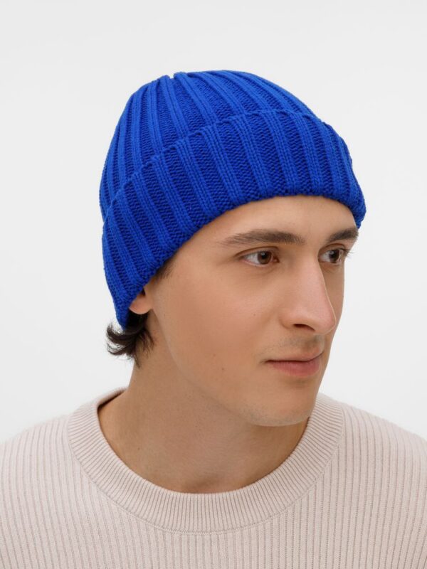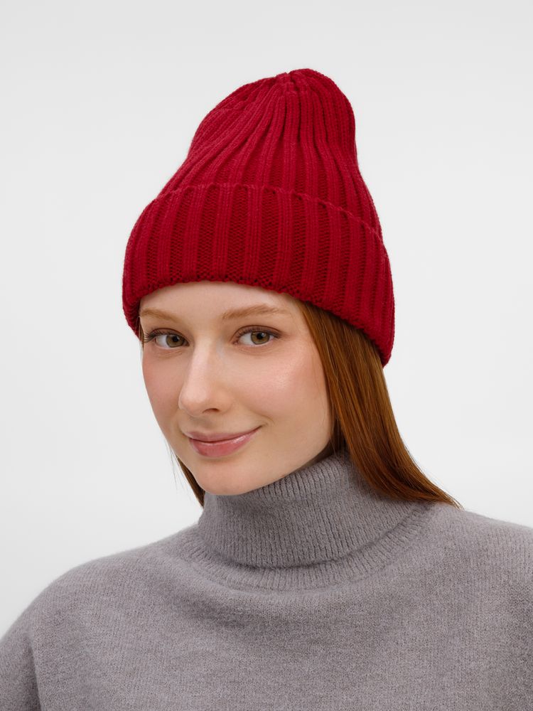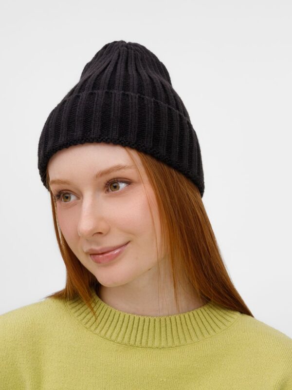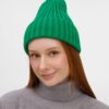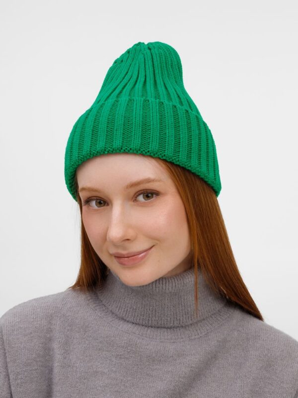 Однослойная шапка рельефной вязки с отворотом.