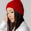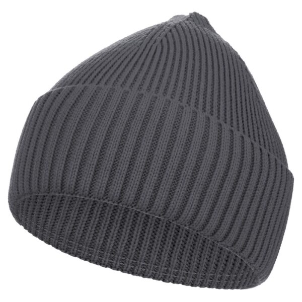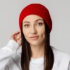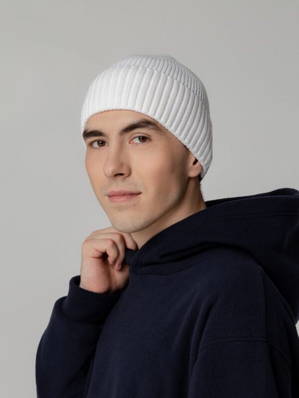 Однослойная шапка из объемной пряжи с отворотом.