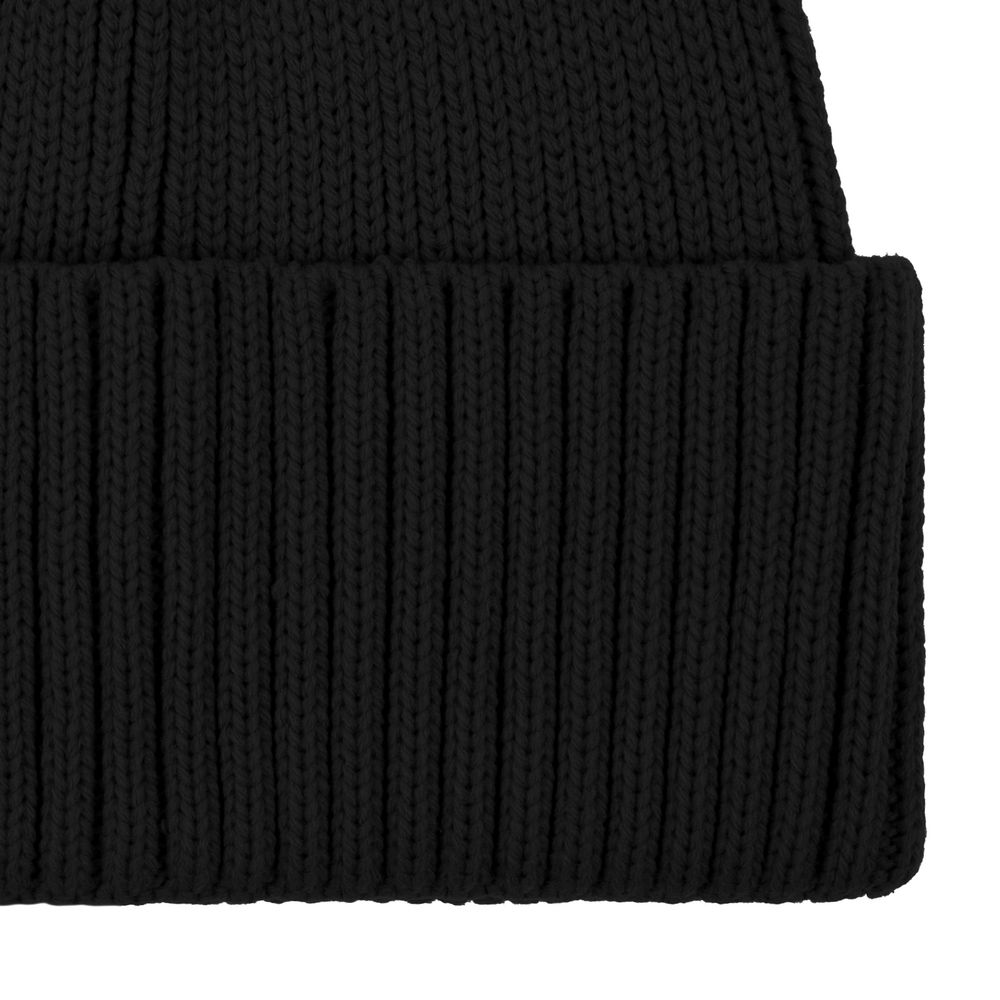 Однослойная шапка из объемной пряжи с отворотом.