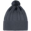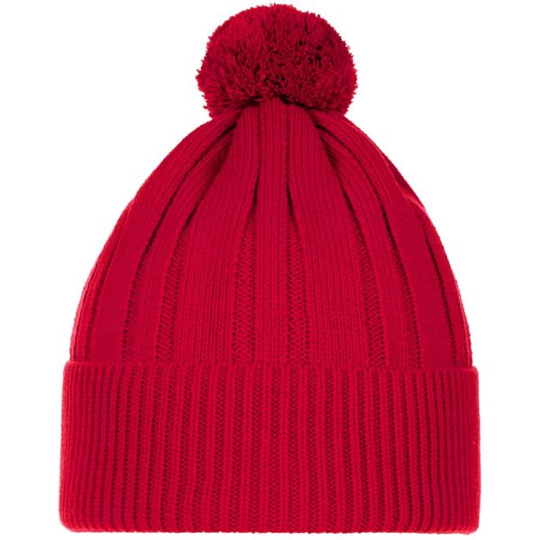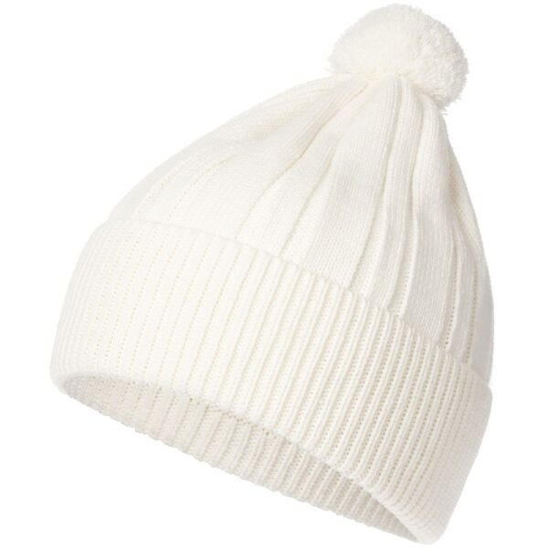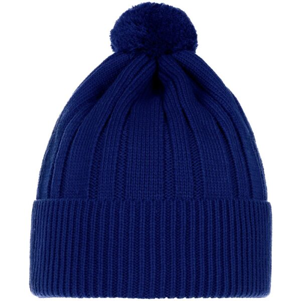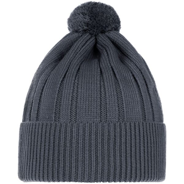 Однослойная шапка фактурной вязки с помпоном и широким отворотом.