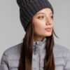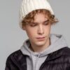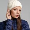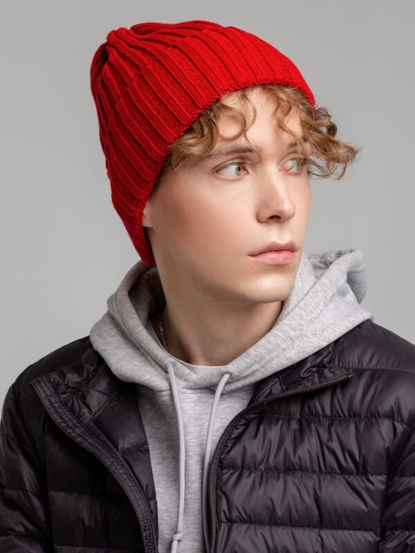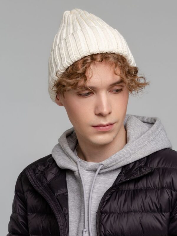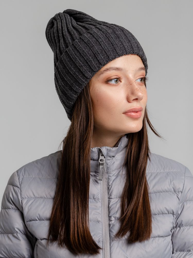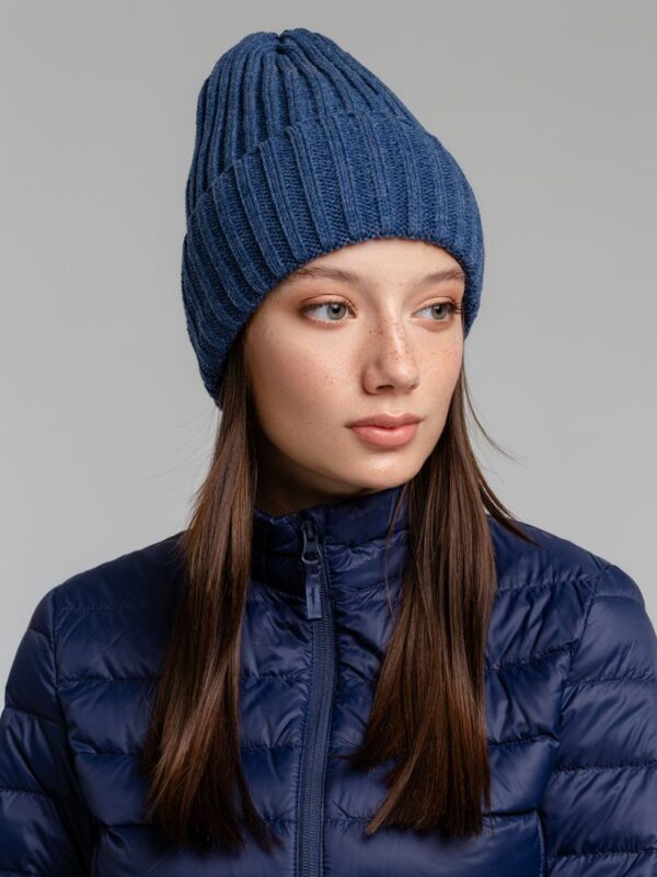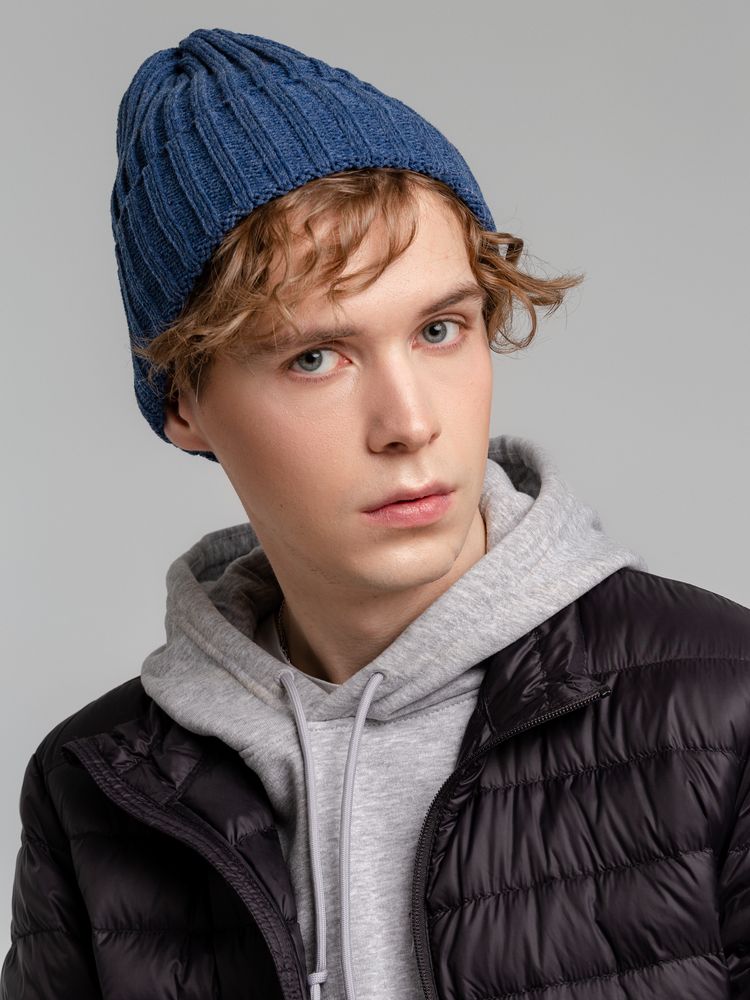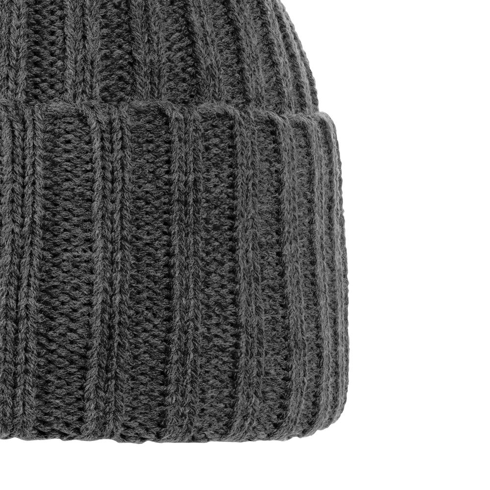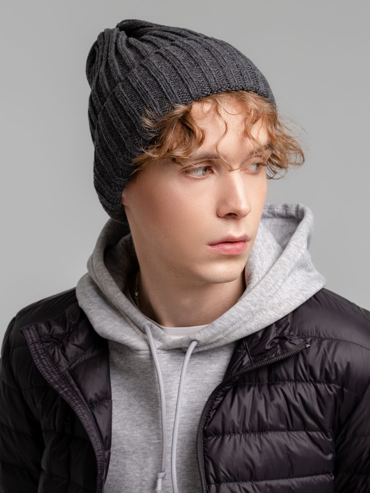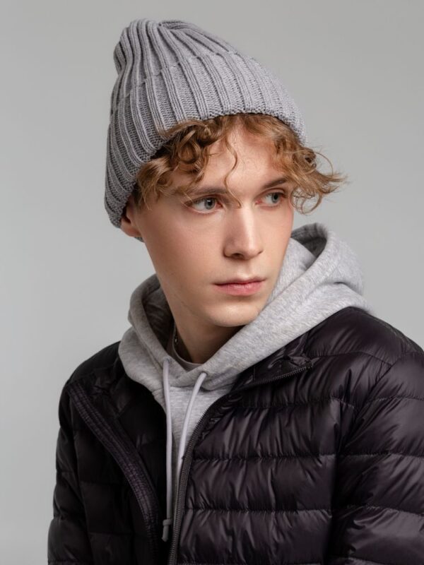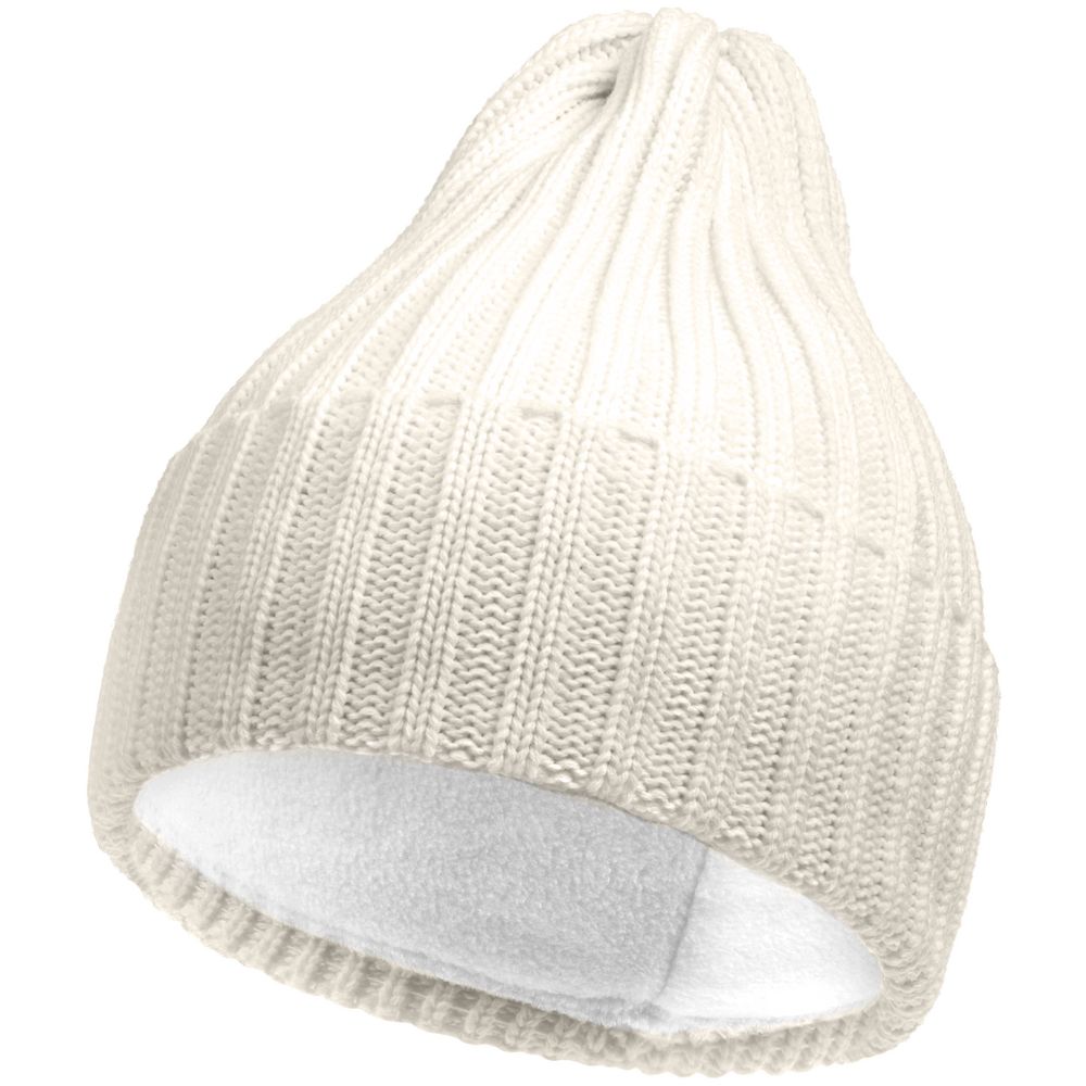 Однослойная шапка фактурной вязки с флисовой подкладкой.