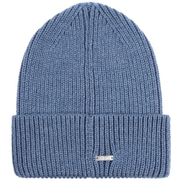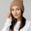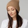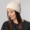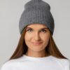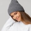 Шапка-бини из полушерстяной пряжи актуальных приглушенных оттенков. Трендовый фасон с удлиненным верхом — для расслабленного повседневного образа.