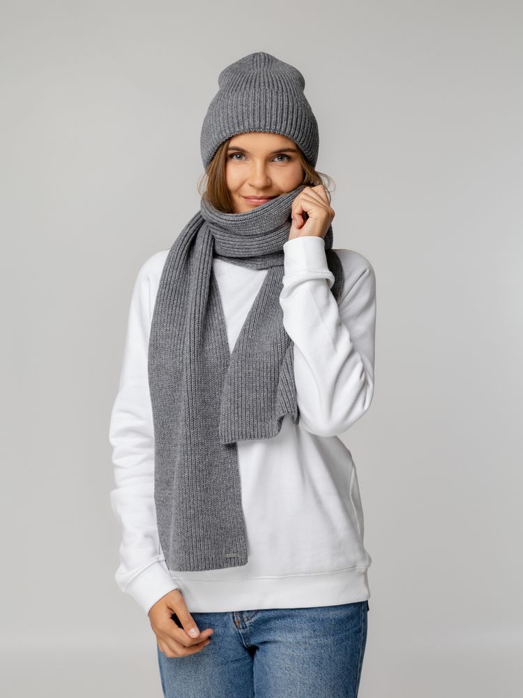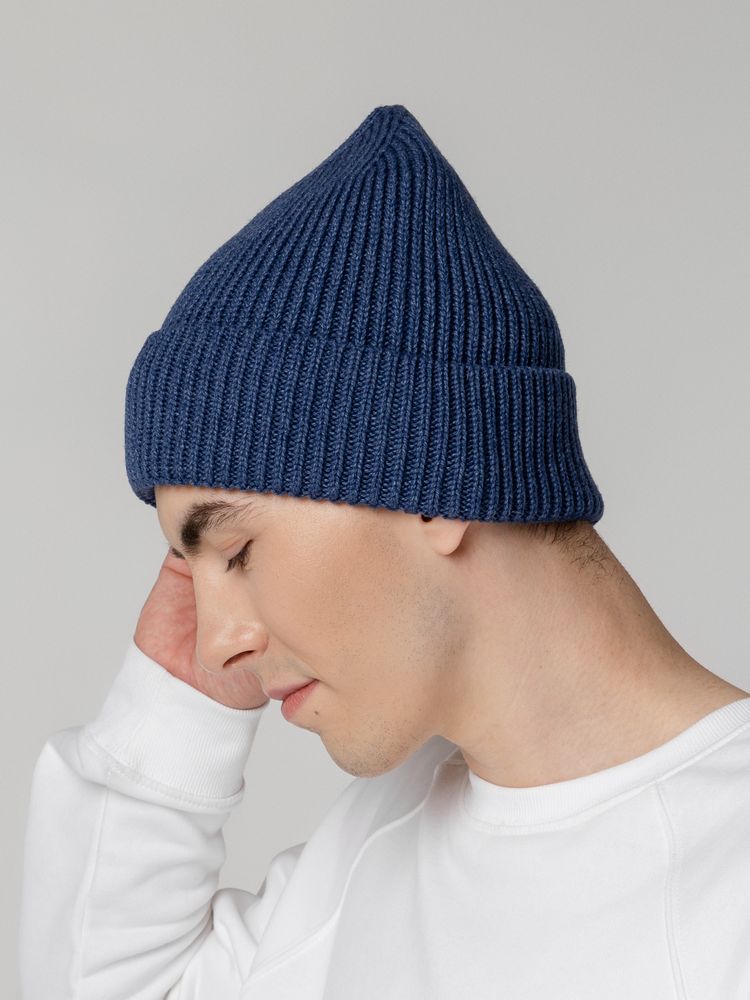 Шапка-бини из полушерстяной пряжи актуальных приглушенных оттенков. Трендовый фасон с удлиненным верхом — для расслабленного повседневного образа.