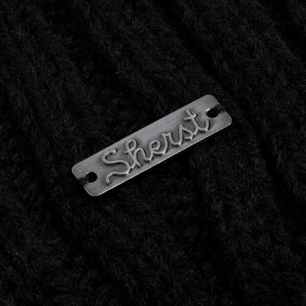 Металлический шильд с названием бренда расположен у заднего шва шапки. Это оставляет место спереди для пришива лейбла или шильдика с логотипом заказчика.