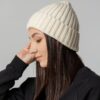 Модная шапка-бини, связанная резинкой, универсальна и подходит для самых непосредственных и легких образов.