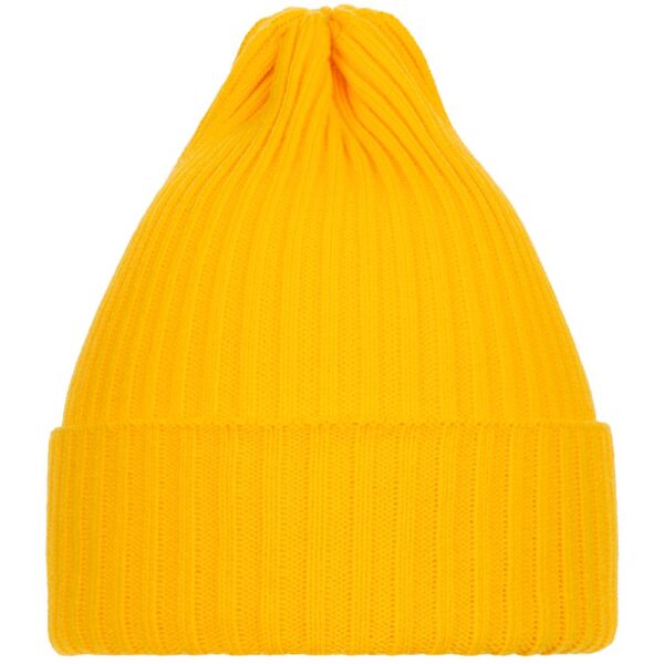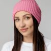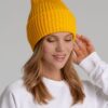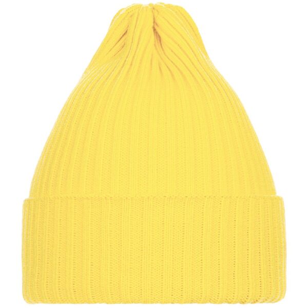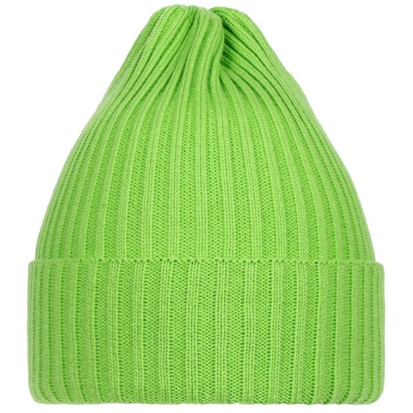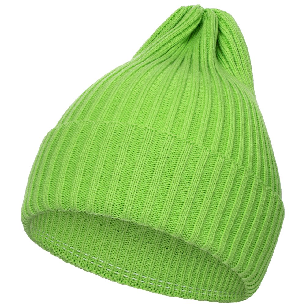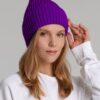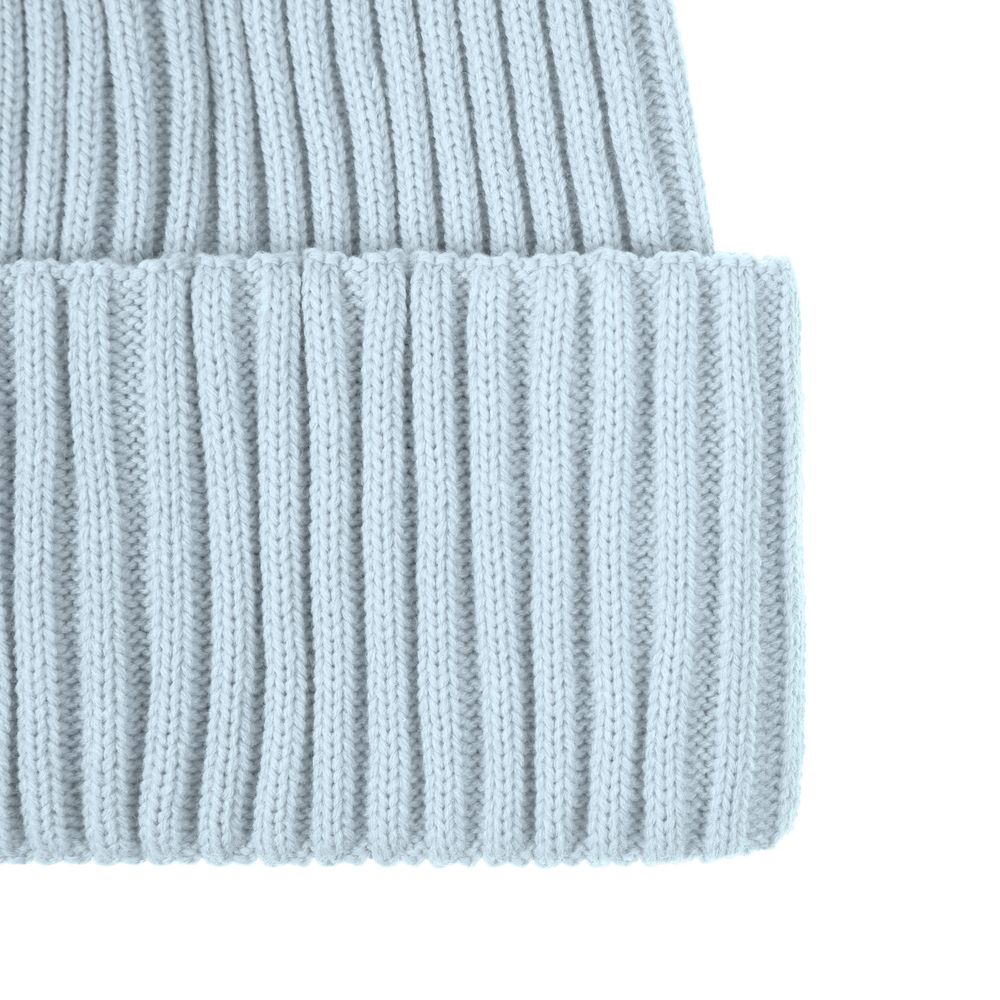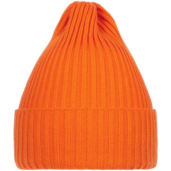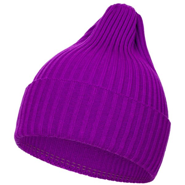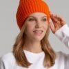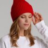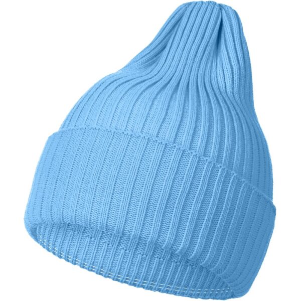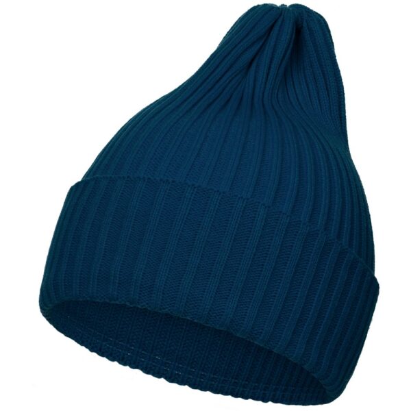 Однослойная шапка фактурной вязки с двойным отворотом.