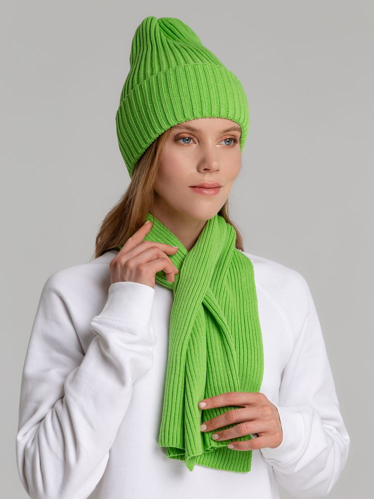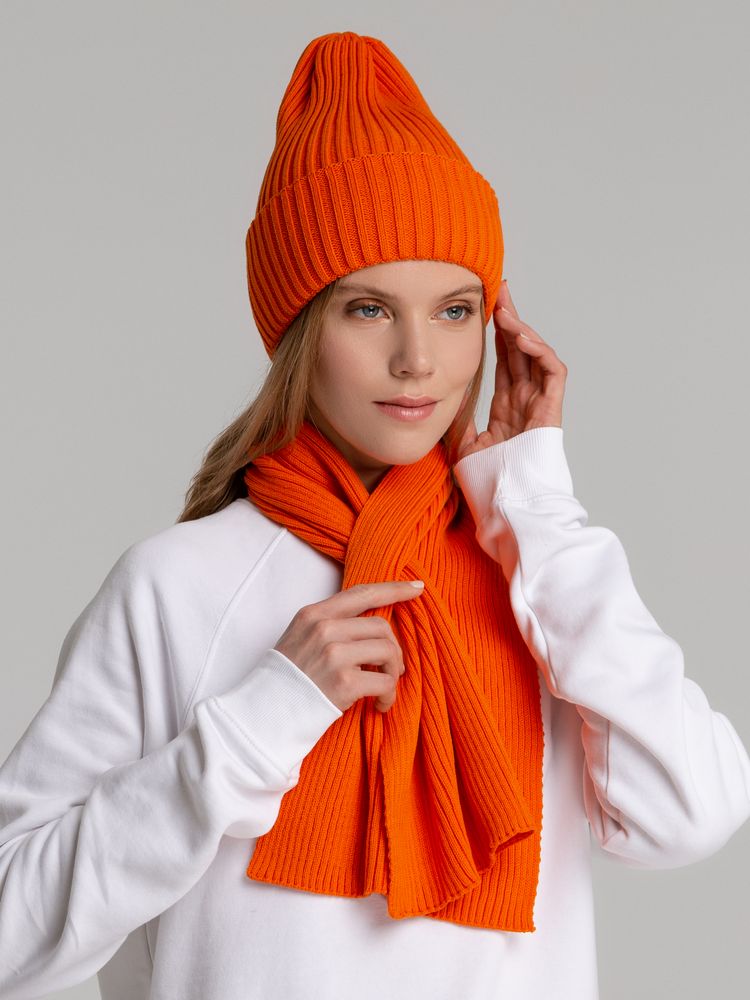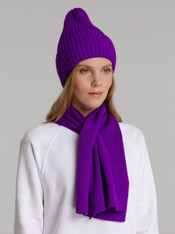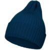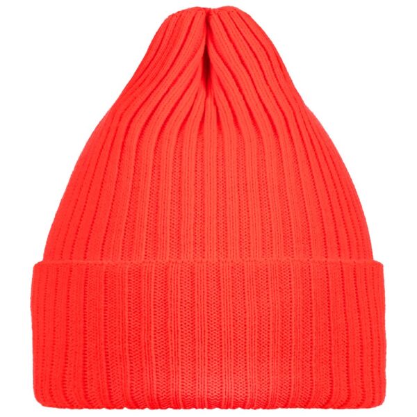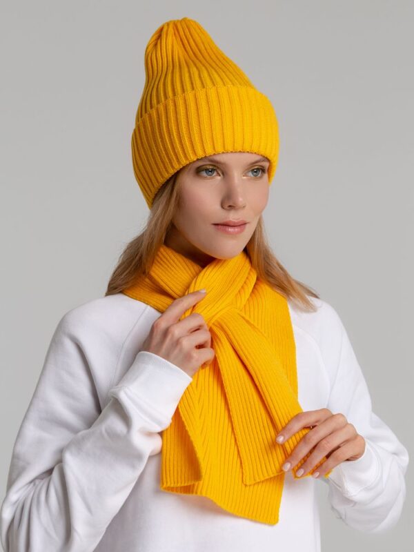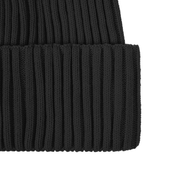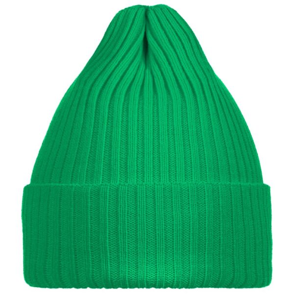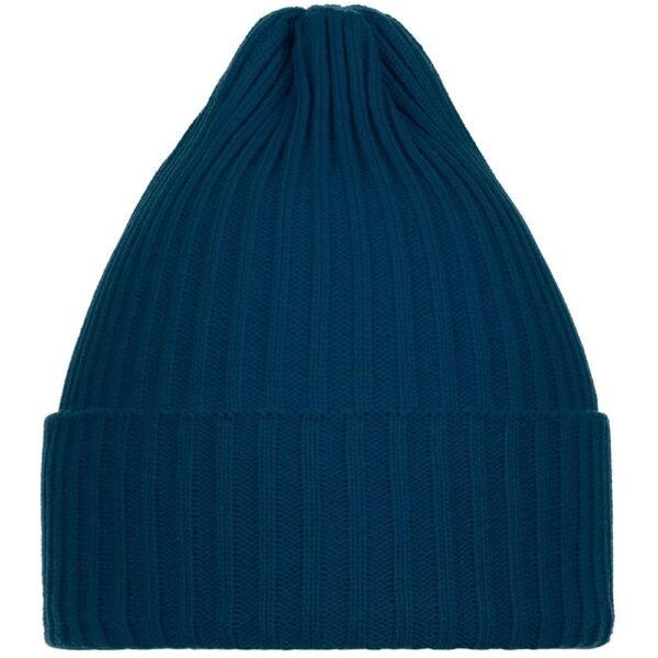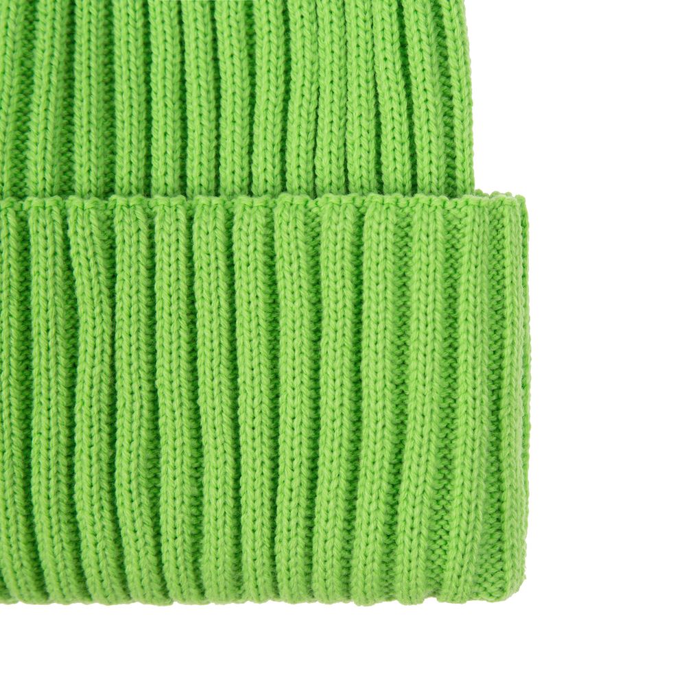 Однослойная шапка фактурной вязки с двойным отворотом.