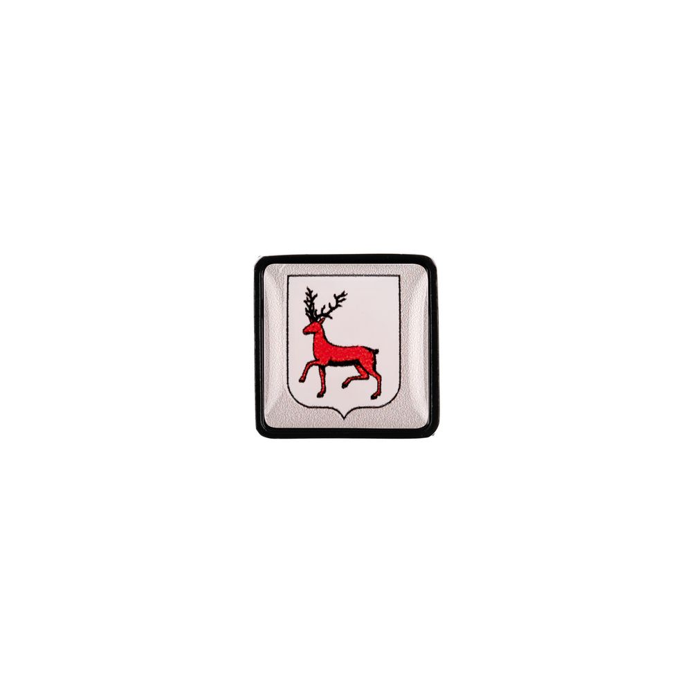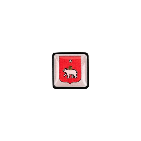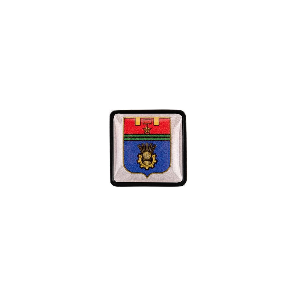 Металлический шильдик с объемной наклейкой под смолой с изображением герба одного из 14 крупных городов Российской Федерации — простой и элегантный способ показать региональную принадлежность компании, обозначить расположение филиалов или напрямую обратиться к клиентам из определенного города.
